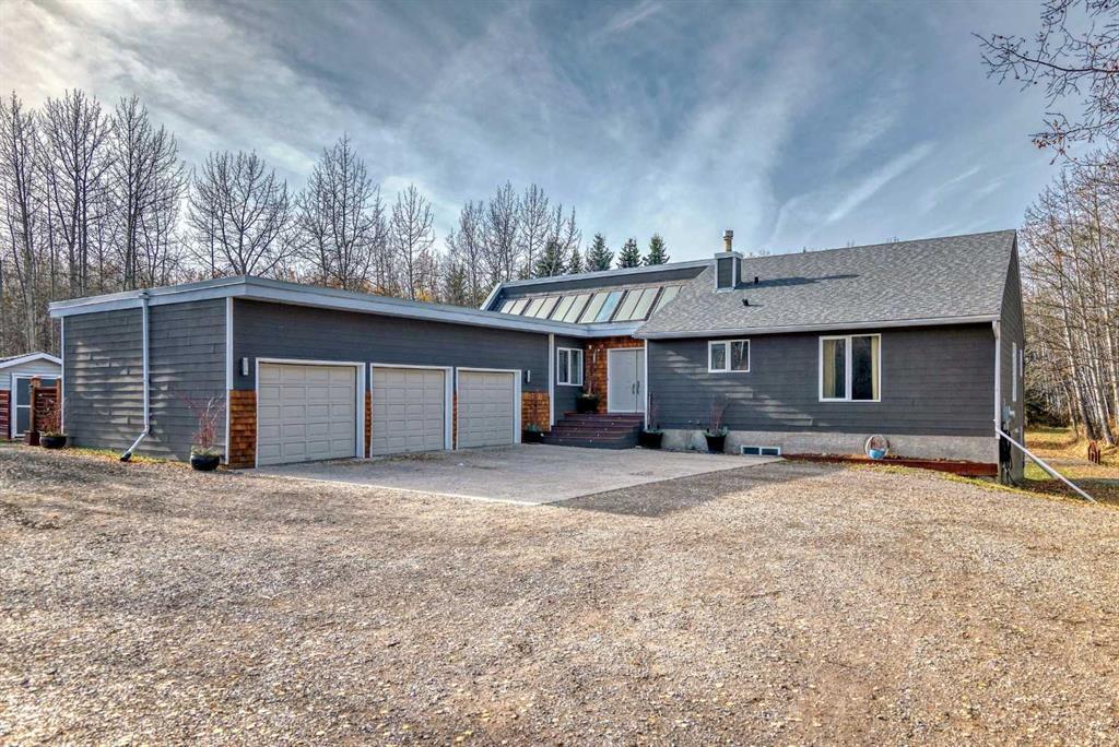 Welcoming fully developed walk-out Bungalow situated on 3.11 acres is the perfect blend of tranquility and convenience. Surrounded by trees, this home offers a very private setting and only minutes to Calgary and Okotoks. A total of 5 bedrooms, four baths, over 4000 sq ft of developed living space and triple attached garage. The open-concept floor plan creates a seamless flow from the oversized kitchen to the spacious dining area to the grand living room, ideal for family gatherings and entertaining. The main living area features vaulted ceilings and hardwood flooring throughout, complemented by large windows that flood the space with natural light. Step through the sliding door to discover an expansive west-facing deck, ideal for outdoor relaxation. The lower level has in-floor heat and is fully developed with an illegal suite plus recreation/games area, updated 3 pce bath, laundry, mechanical and storage. Other features of this home are convenient main floor laundry and lower laundry, a sunroom that is great for acreage living and can be used as a multi-purpose room. A perfect blend of trees, shrubs and grass for space to enjoy your yard but not too much maintenance. Additionally, the property includes two large storage sheds and RV parking. This home is a wonderful opportunity to add your personal touch and create your dream home!