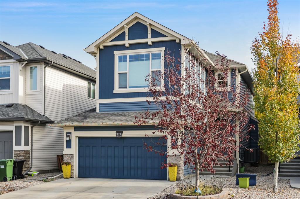 Gorgeous 2 storey Cedarglen home in the heart of Auburn Bay with over 3280 sq ft of developed living space and solar panels! Situated just steps from two schools, green space, the lake and only minutes from the South Health Campus, Brookfield YMCA & Joane Cardinal-Schubert High School. This beautiful home has been meticulously cared for and features oak hardwood flooring throughout, open concept main floor with office nook, island kitchen with upgraded stainless appliances including gas stove, granite counter tops, and undercabinet lighting. The open concept living space is rounded out with the living room that includes a gas fireplace and wired in speakers for enjoying music while you entertain or cook. A walk-through pantry and tiled space from the garage to the front door makes coming in with groceries a breeze. The upper level has a large primary bedroom with walk-in closet and 5-piece en-suite, two additional bedrooms, both with walk-in closets, a full bath, and laundry. The fully finished basement, completed by the builder, features a large family room, rec room, additional bedroom and another full bath, with heated floor tile. The basement is fully wired for sound and offers two locations for TV connections, giving plenty of options for how to set up your family theatre area. This home comes with plenty of upgrades you won’t find in others homes in the area: 200 Amp power, two EV ready charging plugs in the garage, solar panels to help with rising electricity costs, no maintenance front and backyard including a sport court (complete with basketball hoop) in the backyard, central AC, hot water on demand, a 3-zone furnace and so much more! Incredible value in a gorgeous lake community with a location and upgrades that can’t be beat! Truly a one of a kind home in a fantastic location that won’t last long so call today for your private showing!