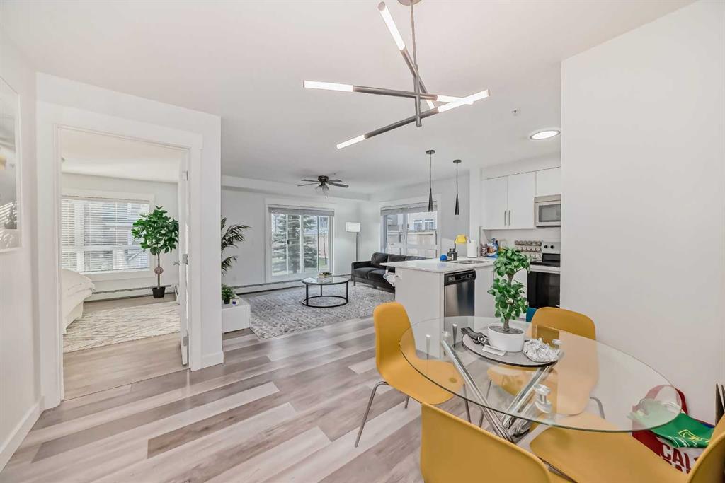 Presenting a spacious and light-filled end unit apartment in the vibrant, maturing community of Skyview Ranch. This open-concept floorplan features two generously sized bedrooms and two full baths, with an abundance of natural light streaming in through large windows on two sides. The primary bedroom offers a walk-through closet leading to a private 4-piece ensuite, providing a sense of retreat and convenience. The secondary bedroom is thoughtfully separated from the primary by a well-designed living area, dining space, and modern kitchen, ensuring privacy and functionality. The welcoming entrance foyer offers ample closet space for coats and footwear, while a dedicated office nook with a built-in desk and connectivity adds versatile workspace. The kitchen boasts stainless steel appliances, sleek quartz countertops, an undermount sink, and ample storage, ideal for efficient daily living. Durable flooring throughout and cozy carpeting in the bedrooms enhance comfort and low-maintenance living. A titled underground parking stall is included in a prime location, adding extra value to this property. This unit represents an excellent rental investment opportunity, with a long-term, reliable tenant already in place. The current lease extends until August 31, 2025, pays $2,150 per month. Skyview Ranch offers convenient access to Calgary International Airport, Deerfoot Trail, Stoney Trail, and nearby Airdrie. Enjoy a neighborhood rich in amenities, including schools, shopping, and ample green spaces, making it an ideal choice for buyers seeking both comfort and community.
