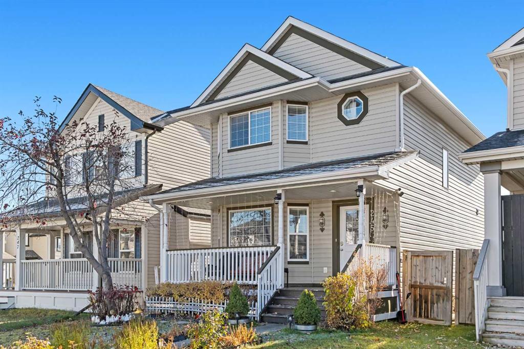 Hurry! Price reduced to $549,900 for a quicker sale!!!... Welcome to this beautiful and well-priced 2-storey home located in the desirable community of Evergreen. With approximately 1,400 sq. ft., it boasts great curb appeal and a front porch where you can sit and watch the kids walk to school (Our Lady of the Evergreen). The functional design includes a spacious front living room with a large bay window that provides plenty of natural light, complemented by a cozy gas fireplace. The kitchen is the perfect spot to entertain, featuring a large center island with a raised eating bar and room for stools. Storage is not an issue, with plenty of cabinets, a built-in desk, and a walk-in pantry. The dining area overlooks the south-facing backyard, which has deck space perfect for BBQs, plus a double detached garage. The defined back door area with a closet means you walk right into the kitchen. Head upstairs to find a fantastic master retreat with room for your king bed, along with a 4-piece ensuite. The second and third bedrooms are well-sized, and the 4-piece main bath completes this level. The basement has already begun development, featuring an almost-finished flex room and a 4-piece bath. Enjoy easy access with a 3-minute drive to Stoney Trail, connecting you to all corners of the city. Please show this house first; you won't be disappointed!