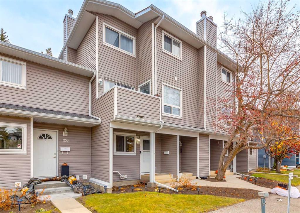 Opportunity awaits in this updated & inviting 2-bedroom, 1.5-bathroom two-storey townhome with your own private fenced back yard in the established community of Shawnessy. Incredible value, convenience, and a low-maintenance lifestyle in the highly desirable Shawnessy Court complex. Step into the bright open front foyer that leads to a well-appointed kitchen equipped with ample, newer soft-close cabinet space, with natural light from the large front window and entryway. The spacious oversized dining area is perfect for family gatherings, easily accommodating a large table. The layout flows seamlessly into the large open living area, highlighted by a well positioned wood burning fireplace. Sliding glass doors open to your fully fenced, private backyard, ideal for outdoor entertaining or relaxation. An updated 2-piece bathroom conveniently completes the main level. Upstairs, discover two generously sized bedrooms, each with spacious closets, and an updated 4-piece bathroom. The basement offers endless possibilities for entertainment—think home theatre, game area, playroom, or gym! This well-managed, pet-friendly complex is just steps away from schools, Fish Creek pathways, LRT and shopping. Don't miss out on this home in a fantastic location—schedule your showing today and envision the possibilities!