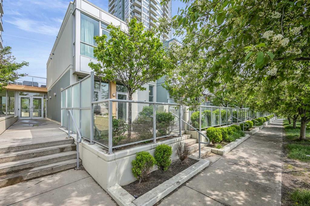 Executive air conditioned 2 storey end unit townhome in show home condition located in the Ovation. Very bright & open plan features full length windows, 9ft ceilings, 2 bedrooms ,3 bathrooms, Gourmet Kitchen is equipped with a centre island & breakfast eating bar, granite countertops, stainless steel appliances, open to large dining area & great room with a gas fireplace. Patio doors leading out to spacious south facing patio. 2-pc powder room & in suite laundry. Gorgeous staircase leading to large master bedroom with 4-pc ensuite with soaker tub & shower, his & her closets. 2nd bedroom with a 3-pc ensuite & patio door leading out to the patio that overlooks the court yard & main entrance. Staircase leading down to large storage room & double attached secured garage. Quiet location, steps from Westbrook, LRT & minutes to downtown. Amenities include indoor pool, hot tub, well equipped fitness area, meeting & games room. Building security & bicycle storage room. Great for an investor. Exceptional Value!