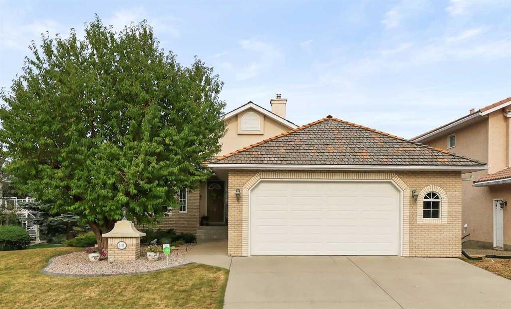 Welcome to this meticulously maintained, air conditioned, walkout bungalow in the prestigious community of the Hamptons, backing onto a beautiful ravine with walking paths. The home is located within minutes of amenities including schools, multiple parks, tennis courts, a golf course, transportation, and much more. This home has great curb appeal with beautiful landscaping. Upon entry, you are met with a bright and open floor plan with soaring 13ft vaulted ceilings, skylights and large windows throughout. Just off of the main entry is a den, perfect for a home office. The main entry leads into a formal dining area, great for hosting friends and family. The large living room boasts a cozy gas fireplace with built-ins and windows with beautiful views of the ravine. The living room opens to a gourmet kitchen, equipped with a breakfast bar, stainless steel appliances, and an abundance of cabinet space. A breakfast nook is found just off of the kitchen with a door leading out to the West facing balcony overlooking the ravine. The primary bedroom is a true retreat with vaulted ceilings and good sized walk in closet. The spa-like 4 piece ensuite comes equipped with a beautiful jetted tub and ample countertop space. The main floor is complete with a good sized second bedroom and a 4 piece main bathroom as well as a mudroom that leads out to the oversized double attached garage. The fully finished walkout basement is the perfect place to entertain friends and family. The sizeable recreation room is adorned with a brick facing gas fireplace and a fully equipped wet bar. A rare third bedroom with a large walk in closet can be found in the basement. The additional den is great for another home office or hobby room. The basement is complete with a 3 piece main bathroom and a large laundry and utility room, updated with a newer hot water tank and 2 high efficiency furnaces. Doors lead out to a covered brick patio and West facing backyard with huge trees and underground sprinkler system. This home has been very well taken care of over the years and pride of ownership is very evident throughout. Perfect for empty nesters or a small family. Exceptional value!
