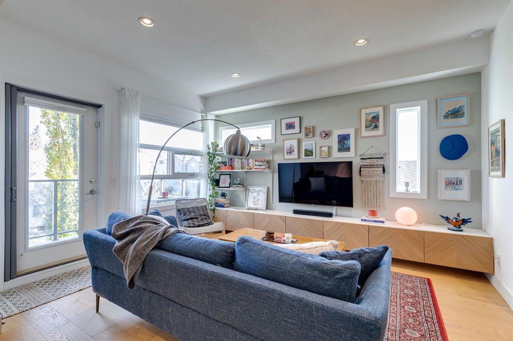 Remarkably large and exceptionally stylish, this TOP FLOOR Marda Loop condo is the one! Get out of cookie-cutter condos and into this 2-storey CORNER unit in a modern boutique 8-unit building on a quiet avenue! This gorgeous space feels like a home, not an apartment, and features 2 bedrooms (one with an office-sized nook!), 2.5 baths and 2 balconies! Walk to all of the trendy shops, cafes & restaurants nearby or pop down to nearby River Park for some time in nature. Minutes to downtown YYC! The main level of this home has a generously sized entrance, perfect for coming in with groceries or pets. Living room features built-in shelving and walks out to the corner balcony. The spacious kitchen has a modern feel with tons of storage space, room for four barstools at the island, stainless steel appliances including gas range, quartz counters and tasteful backsplash. Dining area fits a full-sized table! Oversized powder room and under-stair storage room round out this level. Upstairs, the master has its own balcony, a perfect retreat with your morning coffee! Large nook can be a plant cubby, yoga space, reading lounge or home office and the walk-in closet provides the perfect spot for all your favourite outfits! Luxurious ensuite includes stall shower, separate tub and double sinks. Second bedroom is nicely sized with its own lovely ensuite bath and extra-deep closet, great for extra storage. Laundry is conveniently located on the bedroom level. Fantastic natural light throughout this comfortable space! Custom window coverings, new hardwood flooring, great colour scheme! Heated UNDERGROUND parking stall makes life a breeze in the winter. Condo fees include insurance, managements, reserve contributions, water/sewer and more while the gas+electric bill averages $120 through the year in this efficient building. Incredible price per square foot in this stunning unit - make it your home today!