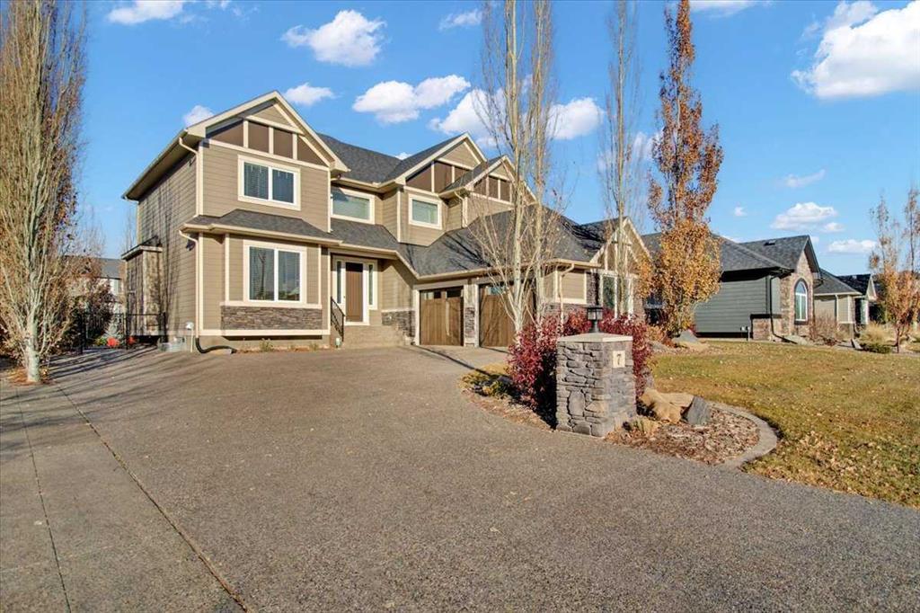 This IMMACULATE home shows like a SHOWHOME, sits on a 1/4 acre lot and deserves your attention! This home is steps away from the Sheep River with all it's interconnecting pathway system and walking distance to St. Mary's Elementary, the Catholic Junior High School and all the shopping in east Okotoks! . The large bright entry with 18' ceilings will take your breath away and you will love the front den next to the spacious entry, as well as the bright living room with large windows and a beautiful feature wall with built in shelves and gas fireplace. The kitchen is absolutely every CHEF'S dream with spacious island, quartz countertops, upgraded appliances including your 6-burner bertazzoni gas stove, upgraded cabinets, and walk-through pantry. The dining area is bright and spacious, with oversized windows, and exits out to the 3-season sun room which features beautiful lighting, radiant heating, electricity/cable, gas line to the barbeque and ceiling fan. Upstairs features 4 bedrooms: 3 large children's bedrooms with corner shelves and large closets plus the master bedroom which is HUGE and comes with a large walk-in closet, a gorgeous en suite featuring a spa air tub, custom built shower, and double sinks in the vanity. The oversized double garage comes with hot & cold water taps and an abundance of shelving. The basement is ready for your creativity and comes with a radon reduction system. Wait until you go outside and see the HUGE backyard which is fully landscaped with well-established trees, shrubs, garden beds, underground sprinklers PLUS a huge patio and beautiful firepit area that's perfect for entertaining your friends! You will love this community with block parties in the summer and easy walking distance to downtown to enjoy all the festivities Okotoks has to offer!