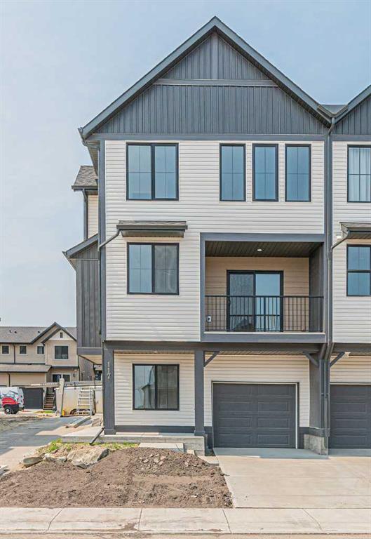 Welcome to this brand new, no condo fee corner unit townhome! Featuring 3 bedrooms, 2.5 bathrooms, and a den, this unique home blends modern contemporary, country farmhouse, and craftsman styles to create something truly special. The heart of the home is its bright and welcoming kitchen, complete with stainless steel appliances, a spacious island with stone countertops, and an upgraded backsplash—perfect for family gatherings and culinary adventures. Enjoy delightful breakfasts and relaxed weekend brunches in your own comfortable space. The living and dining areas are bathed in natural light, with an inviting balcony perfect for fresh air and summer BBQs. Every detail has been thoughtfully designed for your comfort and convenience. The primary suite offers a peaceful retreat with plenty of space and a beautifully tiled ensuite. Two additional bedrooms provide extra room for family or guests. On the main level, you'll find a versatile office, playroom, or flex area that can be adapted to your needs. Entertaining is a breeze with a stylish powder room on the upper floor and a spacious garage with additional driveway parking for guests. With its well-appointed kitchen, roomy living areas, and practical storage solutions, this home is perfect for relaxation and entertaining—all with the added benefit of no condo fees. Conveniently located near schools, parks, ponds, a new highway exit, and both new and existing retail options including CrossIron Mall, this property is ideal for first-time homebuyers, downsizers, or investors!
