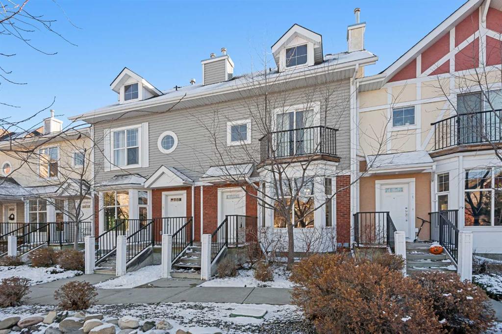 Beautifully styled 2 storey townhome fronting onto the gorgeous courtyard and tranquil pond. Leave your vehicles safely out of the elements in your insulated and drywalled double attached garage while you explore this vibrant community, then come home to a quiet sanctuary. The main floor has a perfect layout with a vast open floor plan, 9’ ceilings, durable laminate flooring, and a neutral colour pallet. Bayed windows showcase those serene courtyard views from the casually elegant dining room. Relaxation is inviting in front of the gas fireplace in the welcoming living room with built-ins for your media equipment. The modern kitchen encourages culinary adventures featuring granite countertops, stainless steel appliances, full-height cabinets and a centre island with breakfast bar seating. A built-in tech desk is great for working from home, doing homework or catching up on emails. Summer barbequing is a breeze on the adjacent balcony with a handy gas line. Conveniently a powder room completes the main level. Soaring 9’ ceilings are also found on the upper level for an airy retreat. The primary bedroom is a true owner’s oasis with a large custom walk-in closet and a private 4-piece ensuite. The second bedroom is almost as luxurious with its own balcony overlooking the serene courtyard and easy access to the 3-piece bathroom. Laundry is also on this level, no more hauling loads up and down the stairs! Enjoy the versatility of a large rec room in the finished basement with ample space for media, work, study, play, fitness and more. Phenomenally located within walking distance to schools, numerous parks, the tennis courts and both West 85th and West Springs Village with tons of restaurants, boutique shops and a variety of professional services. Coming soon to the area is Truman’s West District Central Park consisting of 8.4 acres of parks and pathways plus ice skating, farmers markets, events, a skatepark, basketball courts, concerts and festivals at the outdoor amphitheatre and so much more! When you do need to leave the neighbourhood enjoy the easy access to the newly completed Stoney Trail extension. Come see this outstandingly located, sophisticated and move-in ready home for yourself!