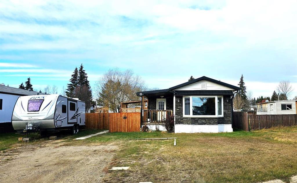 Check out this extensively renovated 2 bedroom mobile perfect for a starter home or investment opportunity for rental income! Current owners installed new kitchen lower cabinets, vinyl flooring in kitchen, living room, and hallway, wood fence with wide access gate and rear parking, eavestrough, fascia, and soffits. Previous upgrades included metal roof, 5pc bath with heated floors, windows, doors, ceiling redone and new insulation installed, as well as new exterior insulation, heat tape, siding, paint, baseboards, casings, furnace, and central AC! This home is move-in ready and relax! Close to playground, hospital, schools, and downtown shopping. Book your showing today! This one won't last long!
