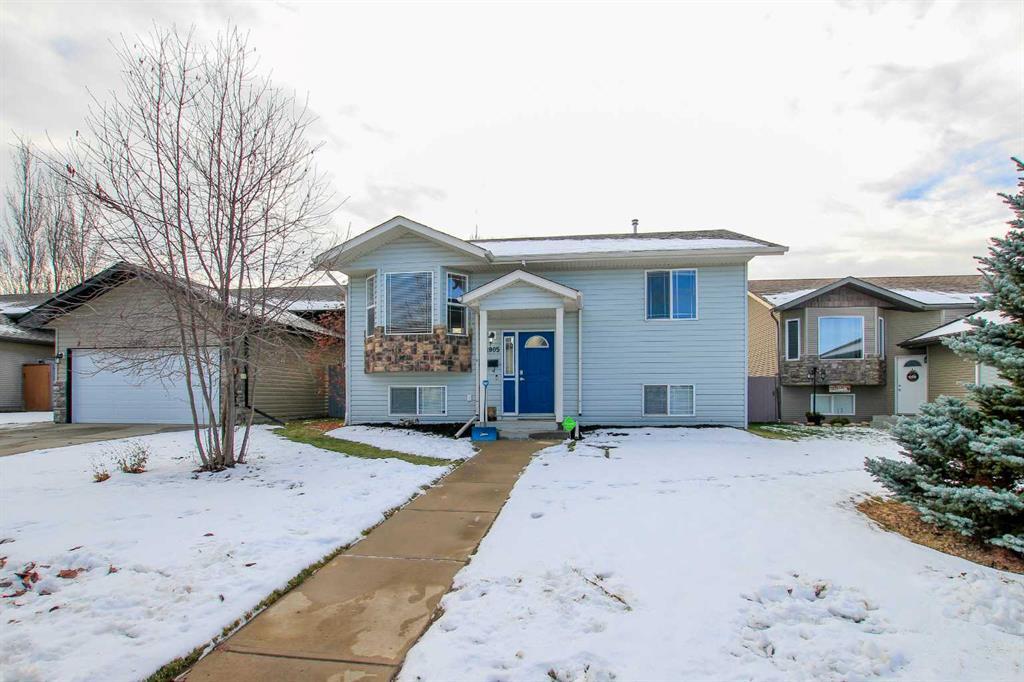 IMMEDIATE POSSESSION AVAILABLE ~ FULLY DEVELOPED 4 BEDROOM, 2 BATH BI-LEVEL ~ 24' L x 26' W DETACHED GARAGE ~ SUNNY SOUTH FACING BACKYARD ~ Covered front entry welcomes you and leads to a foyer with raised ceilings that open to the upper level ~ The main floor features an open concept layout with soaring vaulted ceilings and vinyl plank flooring ~ The living room features a large bay window that overlooks the front yard and has views of a park and playground ~ The kitchen offers an abundance of oak cabinets, ample counter space, full tile backsplash, window above the sink, and opens to an eat in dining space where you can host large gatherings with ease ~ French doors from the dining room lead to the huge south facing two tiered deck ~ The primary bedroom can easily accommodate a king bed plus multiple pieces of furniture, has a walk in closet and gets tons of natural light from a large bay window ~ Second bedroom and a 4 piece bathroom complete the upper level ~ The fully finished basement with large above grade windows has a spacious family room with built in shelving, 2 bedrooms, a 3 piece bathroom, laundry and space for storage ~ Other great features include; Central air conditioning, new carpet ~ The backyard is landscaped, has a garden shed and is fully fenced with access to the back alley ~ 24' W x 26' L detached garage is insulated, finished with drywall and has built in shelving ~ Located close to multiple schools, parks, playgrounds, walking trails, Abbey Centre and shopping with easy access to all other amenities!