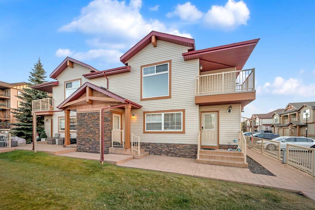 Welcome to this beautifully refreshed, upper floor corner unit in a fantastic townhome community in Panorama Hills! Newly painted and carpeted, this immaculate 2-bedroom home is a true gem. Step onto the covered balcony, which overlooks a serene green space, perfect for enjoying peaceful summer evenings. Inside, the open-concept layout features vaulted ceilings and large windows, filling the home with natural light. The well-appointed kitchen offers an island with an eating bar, complemented by a spacious dining area and a generously sized family room—perfect for gatherings. This end unit boasts two sizable bedrooms, a 4-piece bathroom, and a bright living room with a glass door leading to the balcony. Additional conveniences include a storage room, a laundry room, in-floor heating, and an assigned parking stall. Located within walking distance to schools, shopping, and restaurants, this home also provides access to nearby ravine pathways leading to the lake. With its proximity to Stoney Trail and Vivo Recreation Centre, you’ll enjoy both convenience and recreation. Affordable condo fees of just $200/month add to the incredible value of this stunning home. Don’t miss your chance to make it yours!