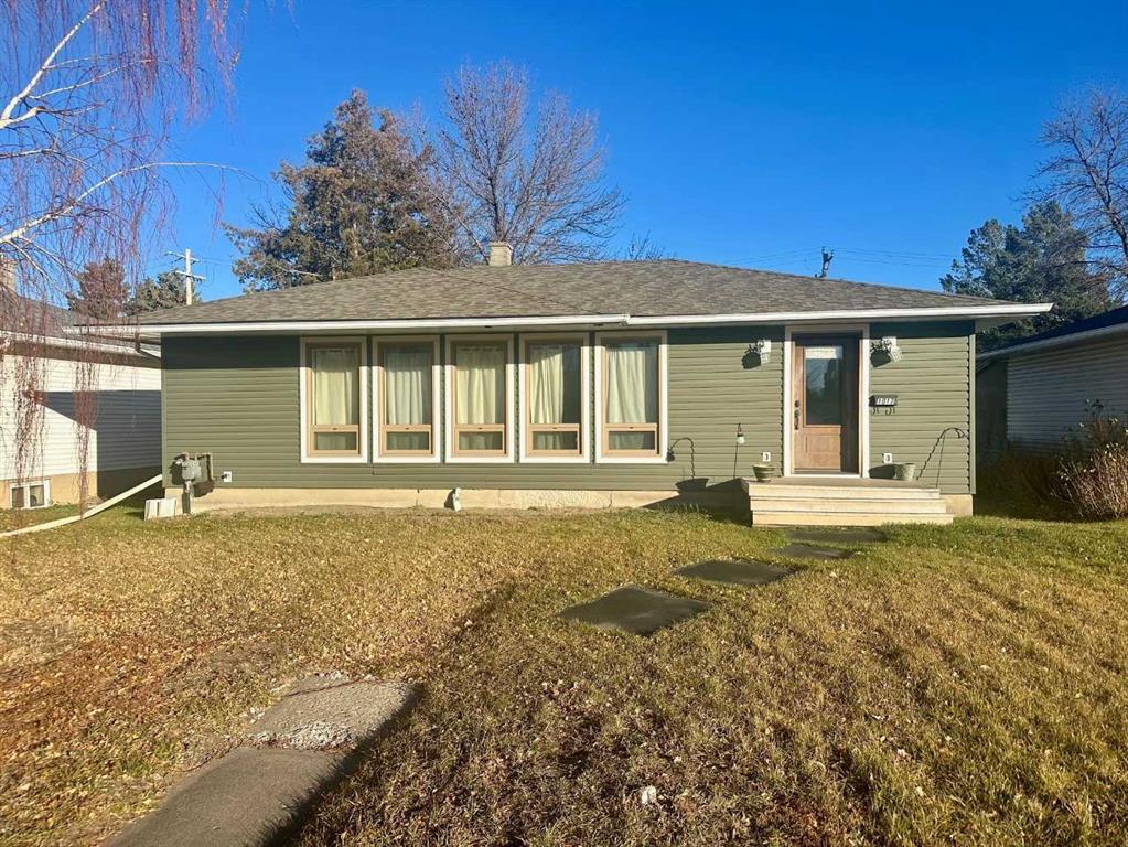 OPPORTUNITY KNOCKS!!! Enjoy this bungalow home in desirable South Lethbridge close to the hospital in the neighbourhood of Victoria Park. Fully renovated on the main level including beautiful refinished hardwood floors, crown molding trim on ceilings, European kitchen with breakfast bar, under cabinet lighting, and stainless steel sink. Primary bedroom features a 3 piece ensuite and large walk-in closet. Secondary bedroom has an armoire, laundry, and door to deck out back. Basement is partially finished with framing and drywall for family room, 2 more bedrooms(with egress windows), a bathroom, an office, and has access via side entrance to the home on the main level. Roof shingles are 8 years old. Vinyl siding done in 2017. Windows, furnace and hot water tank in 2015. Large yard out back with Carport and concrete driveway parking for 3 cars with alley access. There is even a good size shed! Finish the basement in this home and potentially build some positive equity, or perhaps make it a suite to rent out?