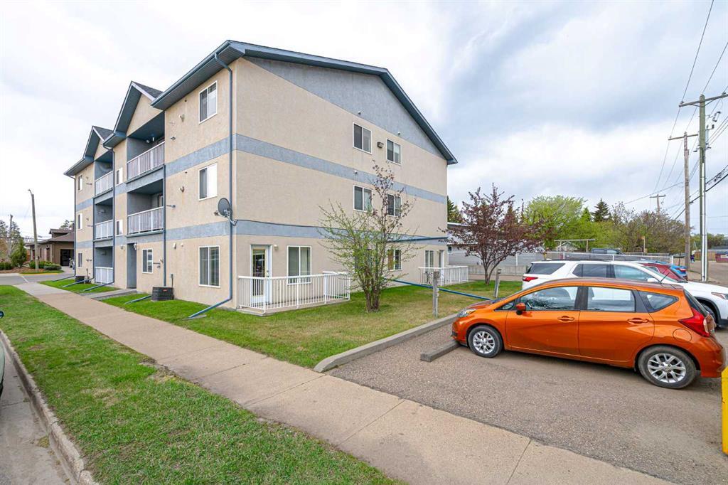 If affordability is what you are looking for, then look no further than this immaculate main floor condo!! You will have NO STAIRS to be able to access this unit, making it a great option for anyone who is mobility challenged. The unit comes with one parking stall which is clearly visible from the grade level balcony which faces north. There is an abundance of windows in this unit which floods the interior space with natural light. Newer vinyl plank flooring makes cleaning and caring for this unit especially easy- in this unit you have two bedrooms, one bathroom and an open concept living room, dining room and kitchen. There is no age restriction in this building as a bylaw amendment was initiated making this exceptional unit available for purchase by both new home owners and empty nesters alike!!