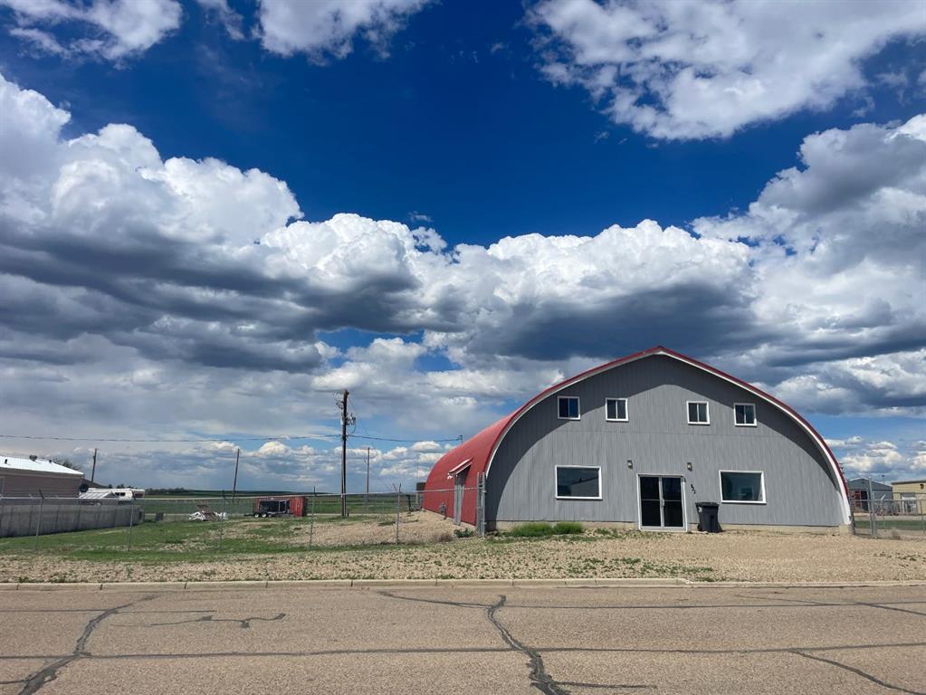 SELLER SAYS SELL! - Quality wood frame quonset style shop on 2 lots with huge yard has seen substantial improvements inside & out. Fenced chainlink compound gravelled with good drainage & lots of parking & storage. Well located in commercial district with easy access from HWY 1. Building has been upgraded with all new LED lighting, high efficiency furnaces with infloor heat, high traffic commercial quality flooring, paint, overhead door & metal exterior. Large, open reception area has 2 offices, utility room, 2 bathrooms, 2000 square ft of mezzanine storage & 2 upper level offices. Shop has high capacity 3 Phase power. Take the virtual tour to see how this can work for you! Purchase additional 3 lots 817, 821, 825 5A Avenue, directly to the north of building - MLS A216517 for package pricing. Vacant possession available March 2025.