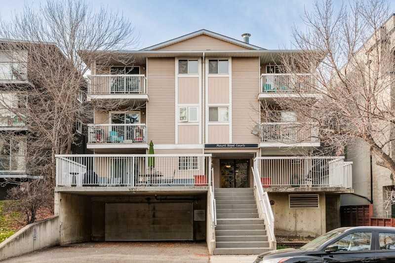 Welcome to this beautifully updated top floor 2-bedroom condo with city views situated in the desirable community of Lower Mount Royal. The bright, open floor plan focuses around the spacious kitchen with modern cabinetry, a huge central island with quartz countertops, new cooktop and stainless steel appliances. This space opens to the nicely appointed eating nook and a large living room providing direct access through sliding doors to a balcony boasting downtown views over a treelined street. Two bedrooms, 4 piece bath, in-suite laundry, and secure/underground parking with additional storage complete this offering. All of this in a location that's close to all amenities along 17th Avenue, including shopping, restaurants, galleries and more. Don't miss this opportunity!