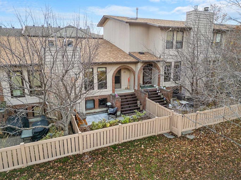 This inviting 934 SF townhouse offers over 1252 SF of living space, blending character, practicality, and convenience. Situated in a well-maintained complex with condo fees of $411/month, this home features a single attached garage with an additional parking pad. A private, fully fenced yard opens onto tranquil, park-like grounds, offering a serene outdoor retreat for pet owners or anyone who loves a connection to nature. Inside, the home maintains its midcentury charm with updates thoughtfully made throughout the years. The bright kitchen includes updated countertops and laminate flooring, while the adjacent dining area overlooks the spacious living room. With its vaulted ceilings, wood-burning fireplace, and cozy atmosphere, the living room is perfect for unwinding. The primary suite offers an updated 4 pc ensuite ensuring comfort and functionality. The lower level is open and provides extra space for a spare bedroom, rec room or an office. Additional improvements throughout the years include replaced lino flooring in the hallway and powder room, washer and dryer units, and a high-efficiency furnace (2015). While some areas reflect the era of the home, it has been lovingly cared for and is move-in ready with opportunities for personalization. You’ll also appreciate the proactive work of the condo board, with a 2019 (approx) roof shingle replacement and attic insulation previously completed. Conveniently located steps from bus stops, minutes to the LRT, and within walking distance to Fish Creek Park, this townhouse offers an unbeatable location for active lifestyles. Affordable, functional, and full of potential – don’t miss your chance to own this charming townhouse!