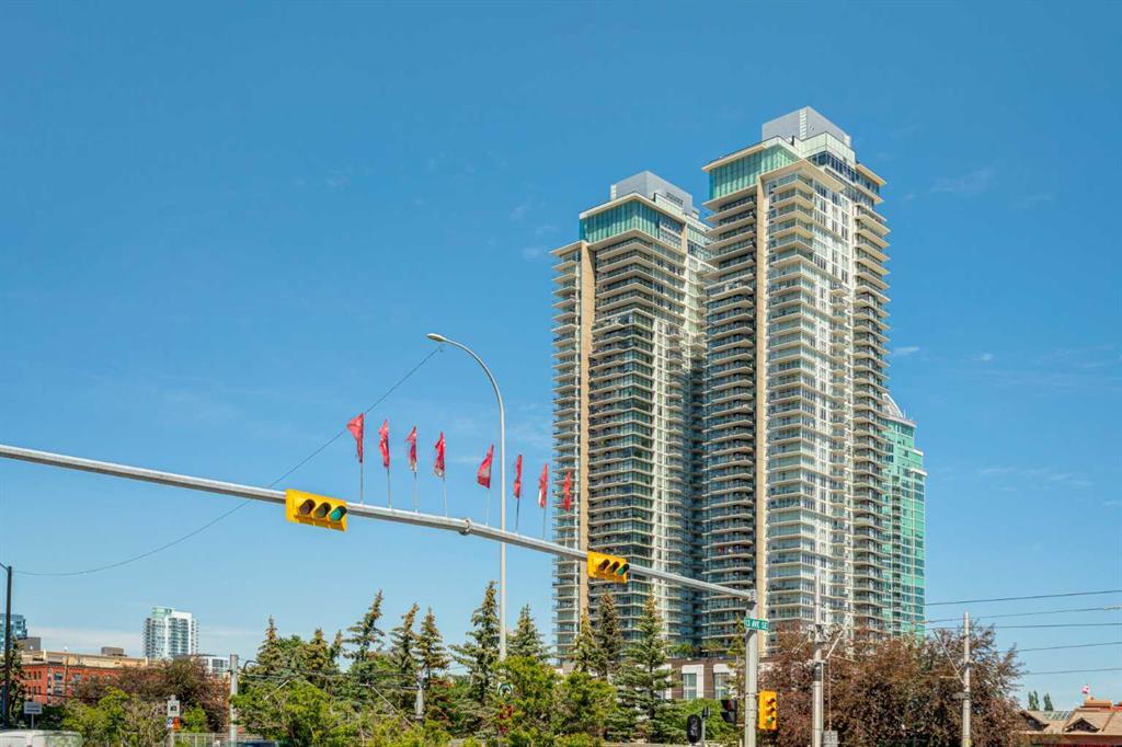 Luxurious 2 bedroom, 2 bathroom CORNER unit with 2 underground parking stalls and unbelievable city views! The quiet “Guardian” building offers outstanding amenities, 24/7 security and an unsurpassable ultra-chic urban location, just steps away from the Stampede Grounds, East Village, Studio Bell, the Bow River and vibrant 17th Ave. Nightlife, trendy cafes, diverse dining, lively pubs and local shopping are literally right at your doorstep! Then come home to a peaceful sanctuary with over 900 sq. ft. that effortlessly blends style with function. The open floor plan is perfectly situated to make the most of the breathtaking views from floor-to-ceiling corner windows. Show off your culinary prowess in the sleek chef’s kitchen boasting quartz countertops, built-in stainless steel appliances, elegant fixtures and a large breakfast bar island to casually gather around. Encased in windows the living room is a showstopping space that invites both relaxation and engaging evenings entertaining guests. Spend the warmer months on the expansive balcony enjoying barbeques and time spent unwinding while the city lights provide the gorgeous backdrop. Even have friends over to watch the Stampede fireworks from here! Imagine waking up each day to those outstanding views from the spacious primary bedroom complete with custom walk-through dual closets that lead to your private ensuite. A second bedroom and a second full bathroom are privately on the other side of the unit and are almost as luxurious with upscale finishes, a custom closet system and of course more of those unbeatable views. In-suite laundry, a separate storage locker and tandem underground parking for 2 vehicles further add to your comfort and convenience. This amenity-rich building is loaded with extra bonuses including a concierge (no more lost packages!), 24 hour security, a fully-equipped fitness centre, a yoga room, a workshop and an amazing lounge for additional entertaining space that leads out the tranquil garden terrace. When you need to leave the building the c-train station, Stampede Grounds, casino, Repsol Centre and award-winning restaurants are mere steps away. Don’t miss this opportunity to live in luxury in this exceptional condo in a sensational inner-city location!