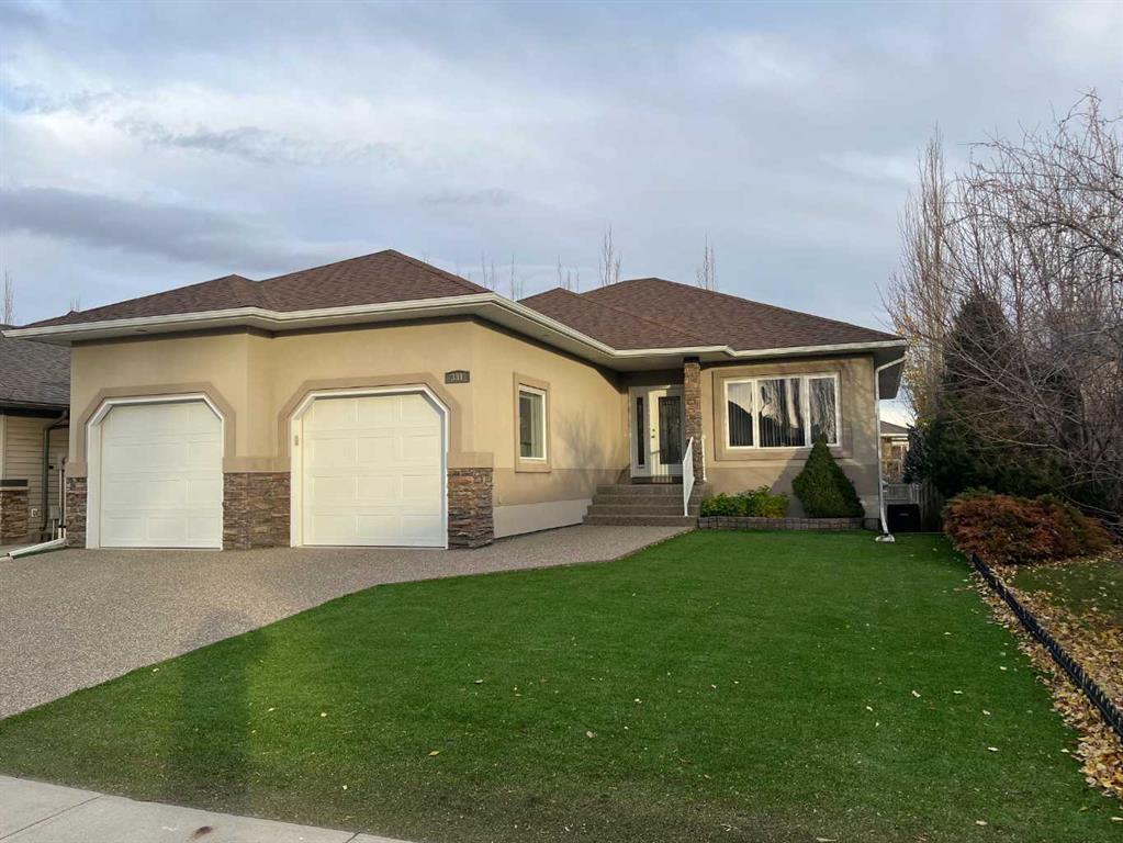 Pristine Bungalow on a very sought after Couleecreek Court, Close to Lakes, Parks and shopping . Large entrance to open floor plan, four bedroom, three bath home. Finished basement with a family room large enough to fit a pool table, also has a second fire place, huge basement windows for ample natural light. Two huge bedrooms down stairs, lots of storage space as well as a room with a sink currently being used as a hair salon. Large covered deck and an oversized heated garage. Exterior is maintenance free with artificial grass and aggregate driveway and walkway. Call your favourite realtor to view this gem today.