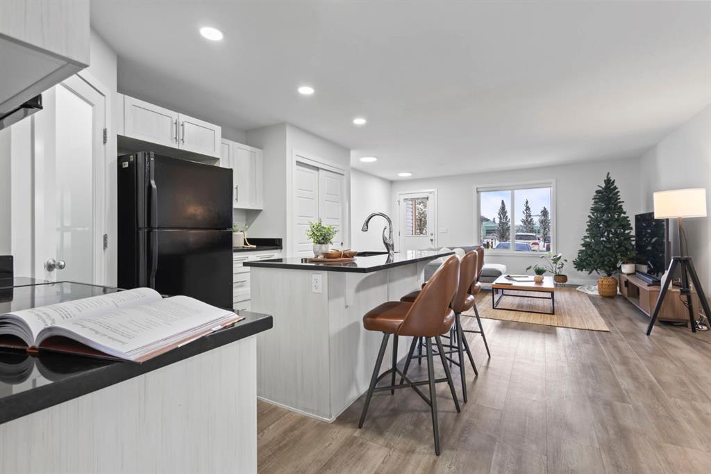 Welcome to unit 5104 at Chinook Crossing, a beautiful bungalow unit that is move in ready and would be perfect as a starter home, for down-sizers or investors. As you enter you are greeted by an open floor plan and vinyl plank flooring throughout the main living spaces. The kitchen offers quartz countertops, corner walk-in pantry, island with seating for 3 and great storage space. It opens up perfectly to the dining area and living room, the ideal floor plan for those who love to host family and friends. Past the kitchen you’ll find 2 sunny, WEST facing bedrooms. The primary bedroom is spacious and the second bedroom makes for a versatile space and has access to the private deck. The deck backs onto a GREEN SPACE and has access to a walking path that leads you around a scenic pond as well as easy access to a dog park. Imagine having access to stunning sunsets and unobstructed views all year round, without a doubt one of the best locations in the complex! This unit also offers a 4-piece bathroom, linen closet, EXTRA STORAGE closet, in unit laundry room with stacked washer and dryer and 1 parking stall. Enjoy maintenance free living and condo fees conveniently include water and heat. The wonderful community of Prairie Springs is home to The Chinook Winds Regional Park and offers its residents an abundance of amenities for all ages that they can enjoy all year round. This park offers over 55 acres of developed parkland space including over 2 kilometres of paved pathways, 4 Beach volleyball courts, 3 Playgrounds for all age use, 8 new baseball diamonds, 1 skateboard park, 1 spray and splash park, 1 multi-use court, 2 concessions, toboggan hill and picnic tables. The park also hosts the Canada Day Fireworks and activities, Little League Baseball, slo-pitch tournaments, and many other festivals, events, and sporting activities, all within walking distance of this wonderful unit!! To top things off, you'll also find shopping, schools (W.H. Croxford High School is mins away), transportation, less than a 15 mins drive to CrossIron Mills Shopping Centre and easy access to the highway taking you to downtown Calgary.