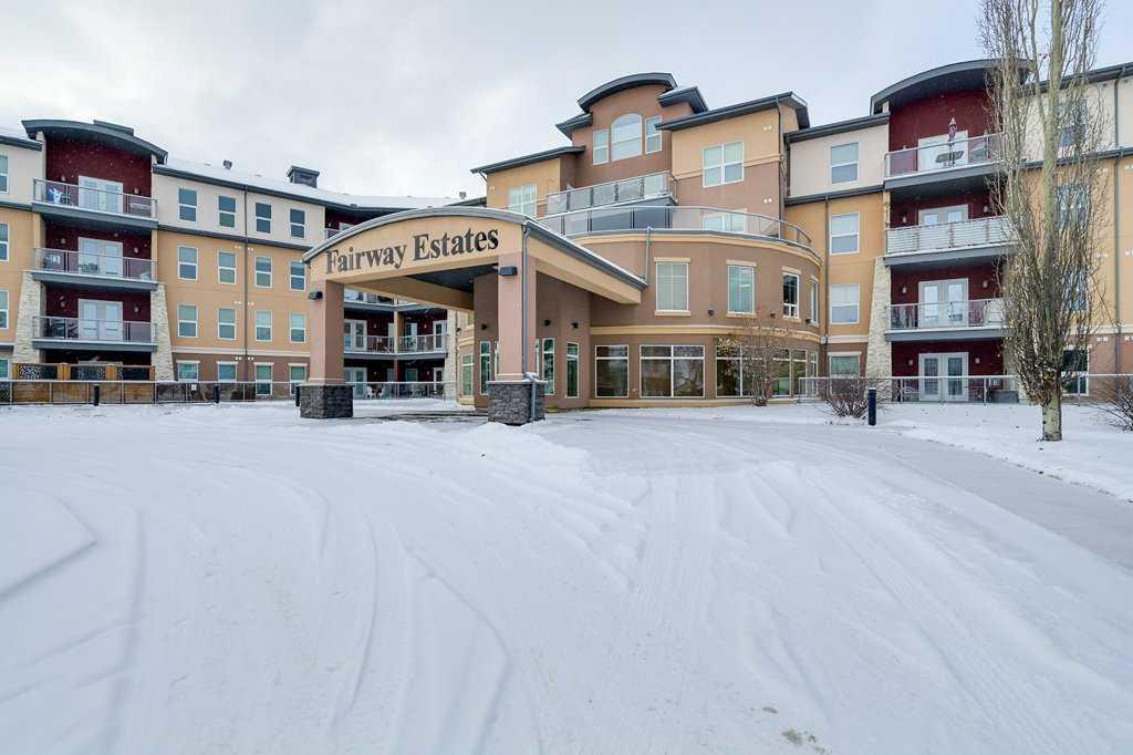 Located in the heart of Sylvan Lake, this stunning Fairway Estates top floor condo offers an unbeatable location just two blocks from the lake and marina. Backing onto the Golf and Country Club, this residence is within walking distance of vibrant downtown, complete with pubs, restaurants, rooftop patios, and shops. Spanning 1,194 square feet, this southwest-facing unit features engineered hardwood and tile floors, a thoughtfully designed wood kitchen with granite countertops, a walk-in pantry, an eating island, and a reverse osmosis system. The spacious living room, with patio doors opening to breathtaking golf course and sunset views, boasts a cozy two-sided fireplace shared with the dining area. The primary bedroom includes a 5-piece ensuite with a soaker tub, while the second bedroom provides flexibility for guests or office space. Additional amenities include a heated underground titled parking stall, an assigned storage unit, a theatre room, a games room, a hot tub, and a multi-purpose room with a kitchen. Experience the perfect blend of convenience, comfort, and luxury in this prime Sylvan Lake condo!