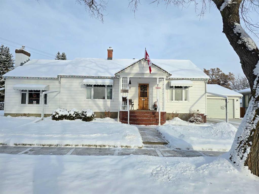 This stunning, post-war bungalow is, truly unique. It looks like a postcard - inside and out. Located on a gorgeous tree lined street in heart of Lacombe, Alberta, within easy walking distance of the downtown core (shopping, post office, professional buildings, banks, coffee shops, restaurants, Lacombe Memorial Centre, Music in the Park, markets, schools, arena, curling rink, parks, playgrounds, walking trails, and more). Photos of the home and mature yard are "worth more than a thousand words". The sellers plan to leave the 10' x 10' garden shed, 6' x 8' greenhouse, firepit, and raised garden beds. Enjoy the thoughtful landscaping design, and take in nature while enjoying your amazing backyard at the end of a wonderful day. Plenty of off-street parking is available on the front concrete driveway that has plenty of space for a good sized trailer. If additional RV parking is wanted, the huge backyard has room to accommodate . The garage is insulated, heated, and has a handy work area (work bench and air cleaner included). The house is unmatched. A summarized list of maintenance completed by the owners since 1999 can be found in the MLS supplements. When you first visit and soak it all in, you just know this property is well loved. The blend of modern improvements along with the classic design and finish is nearly perfect. The original home was constructed in 1948 and features refinished hardwood floors in key areas. Much of the trim, doors, windows, and fixtures are original. If not original, the upgraded materials fit the theme so well. The dining room has a built-in cabinet and the original 1948 light fixture. The two upstairs bedrooms and living room are spacious. The main floor bathroom was redone in 2002. Renovated in 2007, the kitchen looks great with its cherry cabinets, and functions well. A number of the appliances throughout the home have been upgraded in recent years. The sunken family room was added after original construction. It invites you in with high ceilings, light filled windows, in-floor heating, and a wood burning fireplace. Again, like everything else on the main floor, it is a perfect fit. The basement features a true cold room and original cast iron double laundry tubs. They were handy in the 1940/50s and they are handy these days too. In addition to more living space, the basement also offers a bedroom (window does not meet egress), bathroom, and lots of storage.