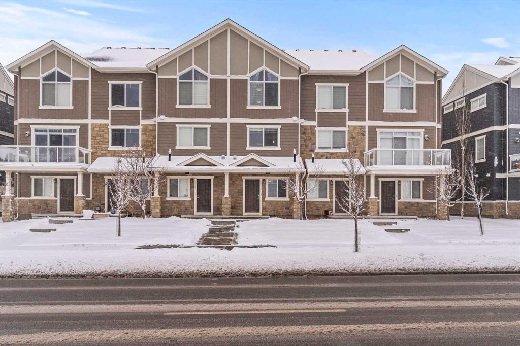 FRESHLY PAINTED THROUGHOUT | HEATED GARAGE | FLEX SPACE | 9' CEILINGS| Welcome to this beautifully designed, fully finished townhome offering 2 bedrooms, 2.5 bathrooms, a versatile flex space, and a heated single attached garage with a full driveway for additional parking. This home has been freshly painted throughout and boasts a thoughtful layout with contemporary features and stylish finishes that are sure to impress. Step inside the entrance level, where you’re greeted by a welcoming foyer and a flexible space perfect for a home office or gym. This level also includes a convenient 2-piece bathroom and direct access to the heated garage, ensuring practicality and comfort year-round. Head upstairs to the main living area, where an open-concept design creates a bright and inviting atmosphere. The kitchen is a highlight, featuring granite countertops, an undermount sink, stainless steel appliances, and plenty of cabinet space. The dining and living areas flow seamlessly, making it perfect for entertaining or relaxing. Large windows bring in natural light, and a spacious balcony offers a peaceful spot to enjoy the outdoors. On the upper level, you’ll find two generously sized bedrooms. The primary suite features dual closets and a private 4-piece ensuite. A second full bathroom and a convenient upper-floor laundry area complete this level, adding to the home’s thoughtful design. Additional features include air conditioning, durable wide-plank laminate flooring, 9-foot ceilings on the main and upper levels, rounded corners, splatter-coated ceilings, and stylish faux wood blinds throughout. The low-maintenance exterior showcases durable Hardy Board siding with stone accents, and the community offers access to parks, greenspaces, and nearby amenities. Located close to schools, shopping, transit, and major routes like Stoney Trail, this home is a perfect blend of style, comfort, and convenience. Whether you're starting out or looking for an upgrade, this townhome has everything you need and more!