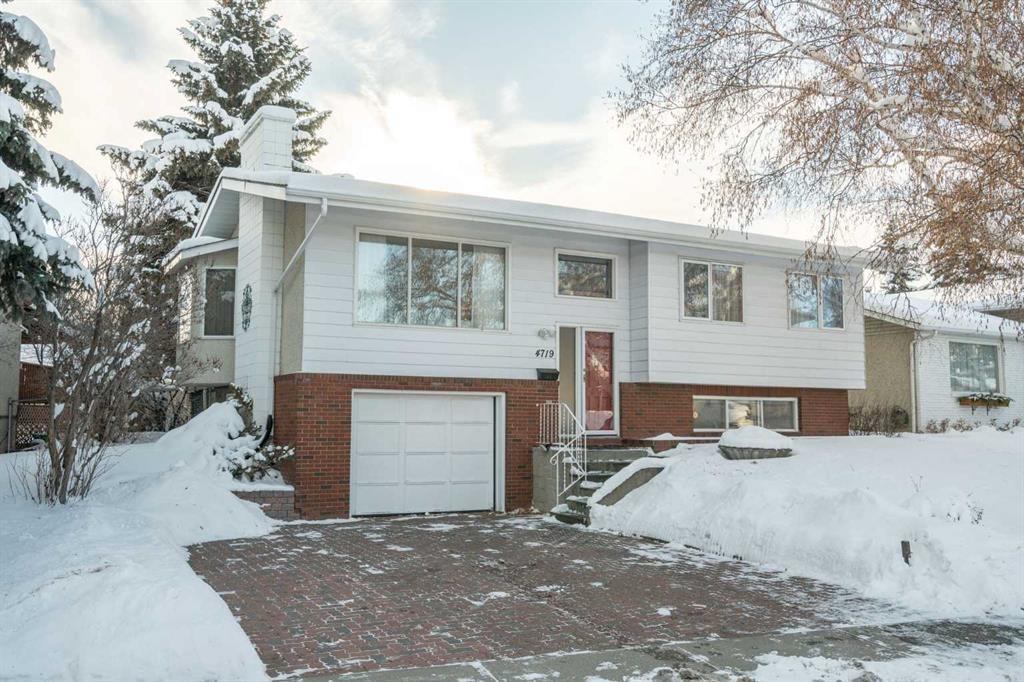 Located in the popular neighbourhood of Varsity, this bi-level home is on the market for the very first time. Positioned nicely on a cul-de-sac with a reversed pie shaped lot and back-alley access, this property offers a well maintained 1838 sq foot home on a 5704 sq ft lot. The single car garage is attached, and the paving stone driveway offers extra parking to the left of the garage door. The entry to this bi-level is tiled and features floor to ceiling wood paneling. The living room is light and bright with a massive picture window, hard wood floors and a wood burning fireplace with brick facing, a stone hearth and built in bookcases. The living room is open to the dining room and has a large bump out window and more built-in shelves and cabinets. The welcoming and cozy kitchen has a large bump out window offering lots of natural light and a custom banquet to visit and enjoy casual meals together comfortably. The back door, conveniently off the kitchen, opens to a two-tiered deck with room for barbequing, outdoor dining and lounging. The back yard is private and spacious, perfect for a gardener or those with an active family. Two oversized bedrooms, and a 5pc bathroom with double vanities complete the main floor. The primary bedroom has a built-in wardrobe the length of the room, two additional closets and two large picture windows. The second spacious bedroom features a sunroom addition with large windows and tile floors that can be used an office or reading area. The basement has stylish parquet flooring and provides a large recreation room with plenty of light and an additional bedroom or office space. The basement also includes a large bathroom and access to the built-in garage with storage and work area. This impeccably maintained and very much-loved family home offers the chance to live in an established neighbourhood, close to schools and amenities and be part of a wonderful community. This is exactly what you have been waiting for.