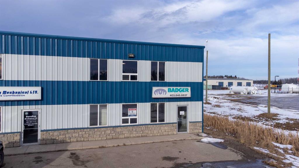 This property is located just off Hwy 11 in the Clearwater County (Central Alberta) approximately 9 km's east of Rocky Mountain House or 70 km's west of Red Deer (QE2). High-traffic subdivision with many established businesses in the vicinity of this location with easy access to the main trucking routes HWY 22 (Cowboy Trail) and HWY 11 (David Thompson Hwy). This lease space is a 3500 sqft industrial bay metal clad features including a floor drain, radiant heat, exhaust fan, and 16ft OH bay door. The bay interior measurements from wall to wall are 34 ft wide x 98'2 ft long with 19'1 ft ceiling clearance. There is a single 16 ft x 14'2 ft OH door. The bay was recently fitted with a small office and a two-piece bathroom. In addition to the bay, there is a secured perimeter fenced shared backyard (accessible with a security fob). This is a perfect setup for warehouse storage, startup businesses, small trucking, or oilfield companies looking for heated indoor storage/parking. The lease does include access to the rear yard, the full width of the bay to the back fence line. LEASE DETAILS: A 36–48-month lease term is preferred. This is a triple net lease the tenant is responsible for the Monthly basic rent of $2800/mth + additional rent of $830.69 for a total of $3630.69 / month + utilities (condo fee $531.12/mth + taxes $299.57/month) The condo fee includes: water, sewer, common area maintenance, building insurance, parking lot & yard snow removal (GST is applicable). Utilities including telecommunications, garbage, power, and gas are payable by the tenant.