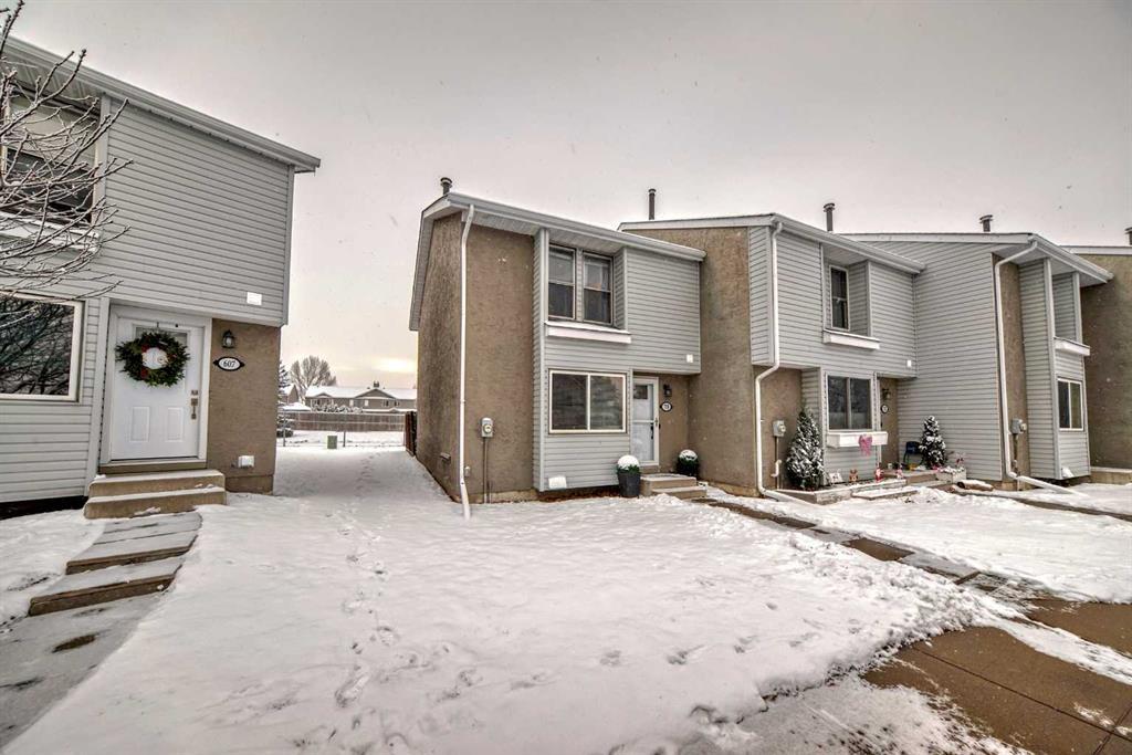 Welcome to Allenwood. This bright and sunny end unit has a private South facing backyard overlooking the pathway to the pedestrian overpass. Entering this home you immediately notice the new doors and new hardware. The eat in kitchen has newer appliances and plenty of storage. The cozy living room has a wooden feature wall and patio doors leading to the private deck. Upstairs you will find a large primary bedroom with a cheater door to the 4pce bathroom, a second bedroom and a bonus room/office that could easily be converted to a 3rd bedroom. The basement is mostly finished and includes a large family/media room and a utility room with laundry and plenty of storage. This Central location offers quick access to Southbound QEII, shopping, schools and Parks.