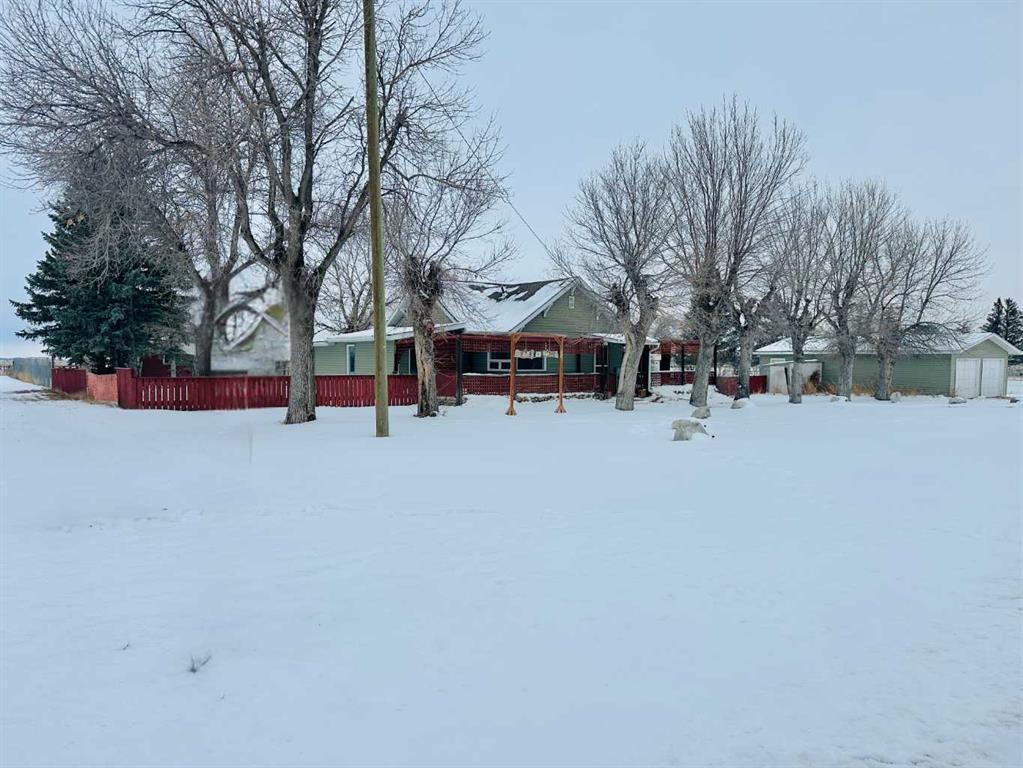 Country cottage in town. Enjoy your slice of acreage living with the perks of town water, sewer and garbage services. Imagine enjoying the yard with family celebrations and kids running around, ducks or chickens roaming free around the fenced in pond area, a couple horses or cows grazing the back area while you enjoy the beautiful treed (fruit trees too) and fully fenced in space behind the home. Have a quiet cup of morning coffee on the front porch or BBQs in the deck area in the summer time and relax in the hot tub tucked in the corner on those cool winter days. There's a detached double garage that has gas for heat and a workshop area, perfect for the handy man in the family. Inside the home you'll be greeted by a spacious entry way, open kitchen and dining space making it dinner to table top easy. The sunken living room is the right space to unwind or enjoy your favourite show. Two bedrooms, a 4pc bathroom and the laundry space finish off the main floor along with a pantry for those appliances and extra groceries. Upstairs is a large open space with windows offers many opportunities. Maybe you need another bedroom or 2 or even extra storage or a toy room....there are plenty of options for this space. The roof and siding are approx. 10 years with plenty of life left and there are underground sprinklers for simple watering keeping the grass green. You can find it in the village of Stirling, located 30 mins south of Lethbridge where there's a K-12 school, post office, drug store, grocery store, outdoor pool and more!