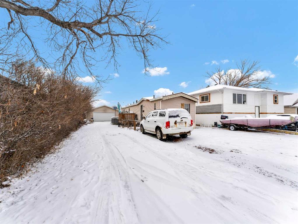 This mobile home is located on its own land in Redcliff and features a detached two car insulated, drywalled, and heated garage! An excellent opportunity for an investment property, first time home buyer, or someone looking to downsize. The large living room has space for all of your furniture and flows into the good-sized eat in kitchen. On one end you will find two bedrooms and a 4-piece bathroom. On the opposite end is the primary bedroom which has a 4-piece ensuite and walk in closet and laundry. This property also offers tons of parking both in the back and with the long front driveway, and a shed.