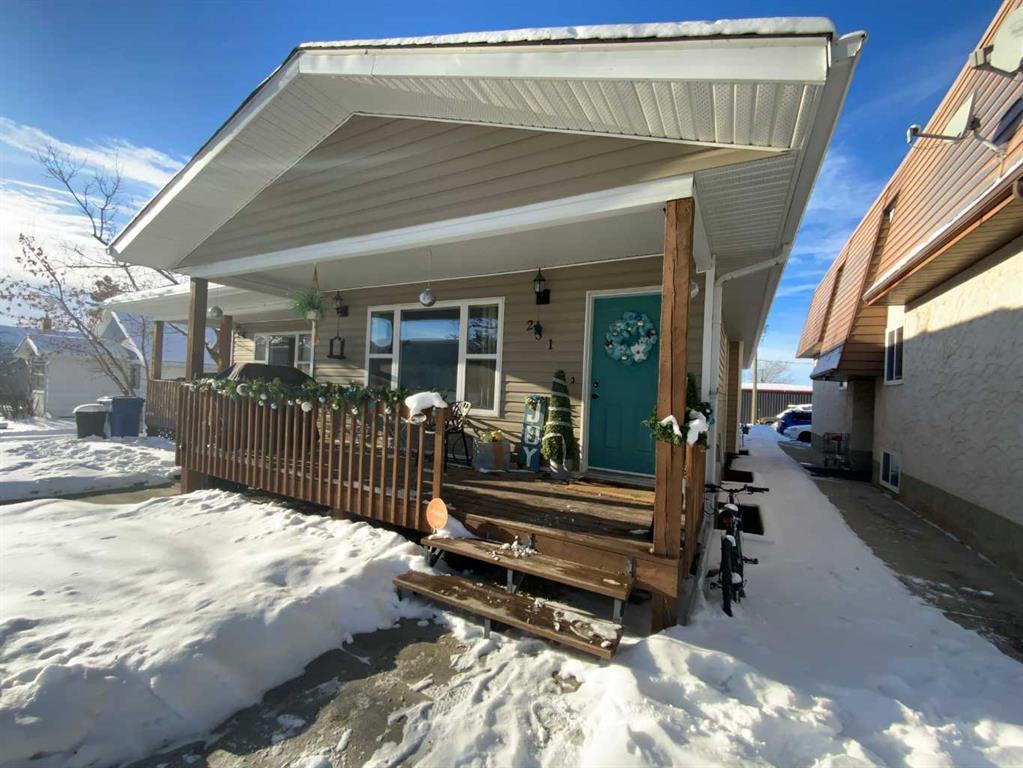 Here is that Half duplex in the Perfect Location you've been waiting for to come on the market in Three Hills! An open concept bungalow style with fully finished basement that has a layout with a great unique design. Plus the ATTACHED rear garage is convenient and highly functional . Situated across from a park, and Sports complex with limited neighbours, easy and close access to public parks, playgounds, indoor pool, gym, arena, curling rink and you are just walking distance to shopping, Prairie College and and more. A charming covered front Veranda you enter the Foyer then a Balanced and well proportioned living space that is open to the Large Dining/Kitchen area. Great for a quiet evening at home or entertaining guests. Down the hall you find the 4 pc bath, a convienieny Laundy, and A Large PRIMARY Bedroom and a second bedroom . The Primary Bedroom has a cute and functional nook perfect for a bookshelf and a rocker, a desk, or make up table. 2 large closets and lots of natural light. The back entry connects you to your convenient single attached garage. No snow no rain, and a warm car protected from the elements . The back entry has lots of room for coats, shoes, boots, and more. Downstairs fully finished with smart storage, a 3 piece bath, 2 bedrooms, One even has a walk in Closet. Also a Massive Family Room Area. With another office area. Great location for retiring or Your family to get started.