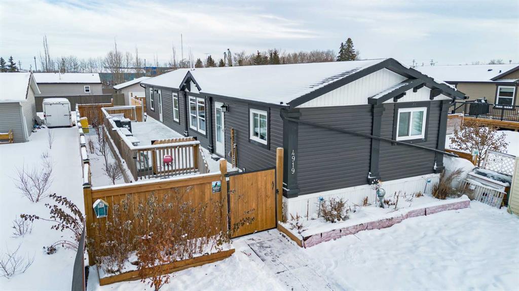 Here we have a great modular sitting on its own lot on the east side of Stettler. You enter this home and immediately can appreciate the open concept. There is plenty of room for all of the outdoor gear between 3 separate entrances with lots of closet space and hooks for easy hanging of the coats. The main area of this home is great for entertaining. There is high vaulted ceilings to make it feel even bigger. The modern kitchen has stainless steel appliances, a large pantry, and loads of cupboard and counter space. The dining room is large enough to have a large table for hosting many guests, and just on the side of the kitchen and dining room is the living area. Just off of the kitchen there is an ample sized laundry room with lots of space for a freezer, as well as lots of shelving for linens and storage. The master bedroom can accommodate most any bedroom furniture, and also has a huge walk in closet, and a 4 piece en-suite bathroom, and even a jacuzzi tub. At the other end of this home there are 2 more bedrooms, and another 4 piece bathroom. Outside you can enjoy the very large deck, hot tub, fenced yard, and plenty of storage space with 2 shed included. There are also various fruit trees on the property and some great spots for flowers and plants. If you're in the market for an affordable newer home, then you may want to check this out. This place would make be great for retirement, small family, or maybe just looking to buy your 1st home.
