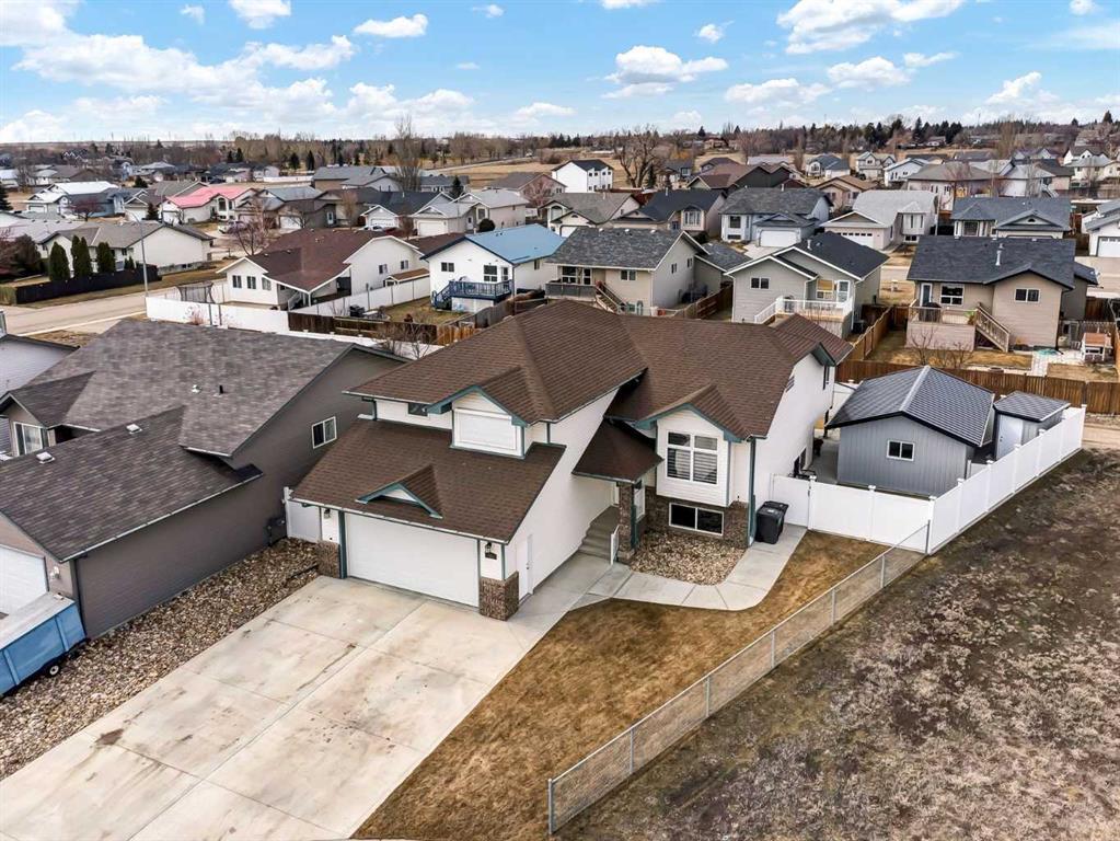 Thoughtful design and luxury meet in Brooks! The customizations start immediately as you're greeted by an extra wide hardwood staircase which sets the tone as you enter this impressive executive home! Featuring 5 large bedrooms and 3 bathrooms, this property would host a family of any size or simply be the home that you've always deserved. Stunning hardwood floors are highlighted by the generous natural light that flows throughout. The grand custom kitchen (with in floor heat) is open to the dining area and living room and is framed by vaulted ceilings that look up to a magnificent primary suite! This spectacular space plays host to everything on your wishlist... plenty of room for furniture, Peka Rollshutters window covering, a huge walk in closet and an ensuite/glam room! And basement... meet Man Cave! An impressive Media/Family Room highlights this huge space. The immaculately designed and impeccably maintained exterior includes the screened in deck/outdoor living space, extensive concrete work, sprawling lawns with underground sprinklers, an additional metal clad (detached) 16 x 22 heated garage/workshop, metal clad shed, vinyl fencing and utmost privacy. It's evident from first glance that every detail of this property was carefully planned and quality crafted. Central A/C, on demand hot water, loads of storage, 2 garages and more! Improvements made to this home over the past 2 years are plentiful and include but are not limited to: tiled kitchen and bathroom flooring, in floor heat in kitchen (!!) and primary ensuite, fresh paint throughout, brand new custom window coverings, vinyl plank flooring in basement, new fridge and stove, led bathroom light fixtures, metal cladding and roof on detached shop and new metal clad shed.