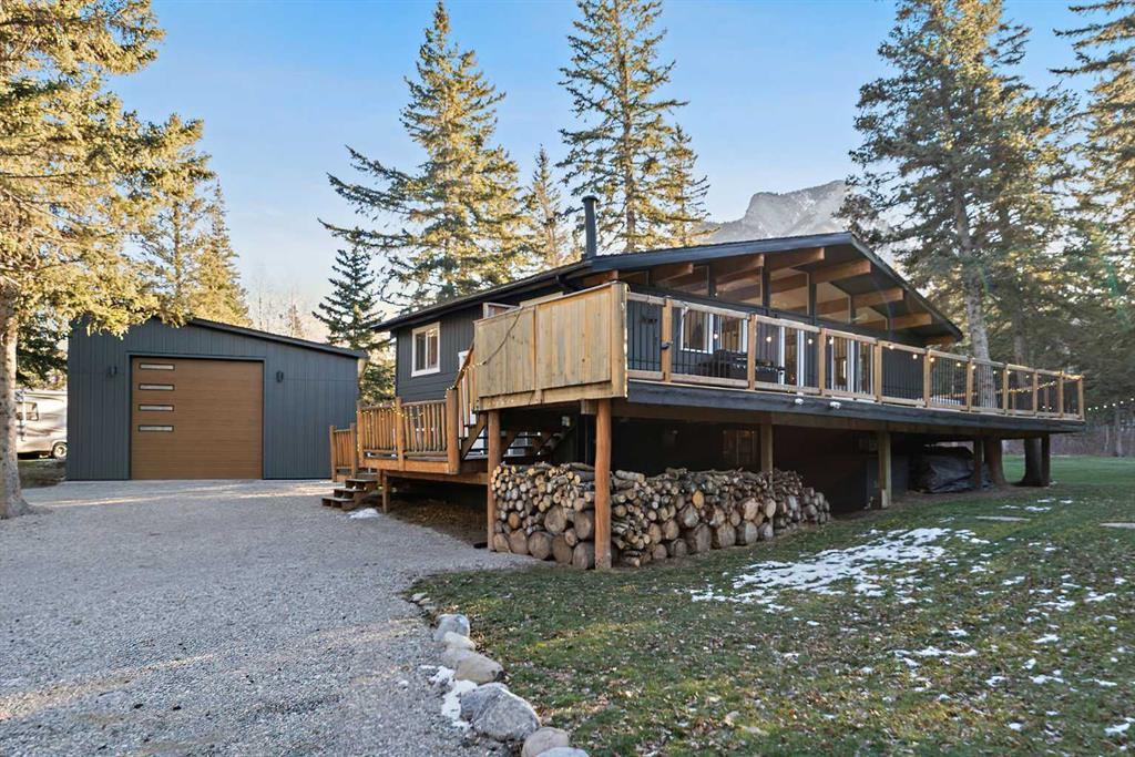 A breath-taking Rocky Mountain retreat, nestled in the highly serene hamlet of Lac Des Arcs. Brimming with upgraded charm, 14 Des Arcs Crescent stands on a South-Backing lot nearly a Full Acre in size neighboring the alluring Heart Mountain. With over 1,800 livable square feet, this commodious residence encompasses unparalleled character complimented with exceptional natural craftsmanship throughout. Beginning with a convenient circular driveway leading up to the home, distinctive exterior features include the Freshly Painted Siding complimented with the Wraparound Balcony. Adjacent, a Newly-Built, Heated, Oversized Garage/Workshop with Epoxy Flooring offers boundless storage/hobby solutions and includes Floor-To-Ceiling Industrial Grade Shelving . Additional parking and RV Storage is offered on the extensive gravel driveway. Amongst entering this Mountain Haven, the Hardwood Flooring merges the Main Level Floorplan consisting of the Living Room with a Custom TV Fireplace Unit, Dining Area, Office Space, Bedroom, and a 3-Piece Bathroom. Exposed Wood Beams and Natural Wood Trim embellish the home's character, while the transom windows capture bounteous sunlight and mountain views. The first floor is completed by the Kitchen with Granite Composite Sink, ample countertop space and cabinetry, Stainless Steel Appliances, and an Updated Refrigerator. The lower level showcases an Owner's Retreat comprised of a spacious Bedroom, Large Walk-In Closet with Built-In Shelving, and a Beautiful 4-Piece Ensuite. An additional lower level Living Area offers another bedroom option, which may provide 5 total bedrooms if converting the Primary Walk-In Closet and Main Level Office area as well. A Utility Room with Washer & Dryer, Laundry Sink, Tankless Hot Water, Water Softener, and Upgraded Dual Furnace System complete the lower level. Other notable home updates include the Poly B plumbing removal and 200AMP Electrical Panel Upgrade. Stepping into the yard, a revived outdoor space showcases extensive landscaping upgrades, providing abundant usable green space with irrigation unique to most of the treed lots in the community. Experience true Mountain Magic underneath star-sparkling skies from the Brand New Fire Pit retreat at the rear of the property. Just beyond the property line, flows Heart Creek, where fresh mountain waters can be exclusively experienced year-round. Also, superbly located just steps from Heart Creek Trailhead and the Bow River offering endless enjoyment for any outdoor enthusiast. Enjoy Prominent Shopping, Dining, and Amenities with World Renowned Tourist Attractions only 10 minutes away in nearby Canmore and 24 minutes to Banff. Experience this rare Rocky Mountain abode for yourself. Schedule a showing with your Favorite Luxury Realtor today!