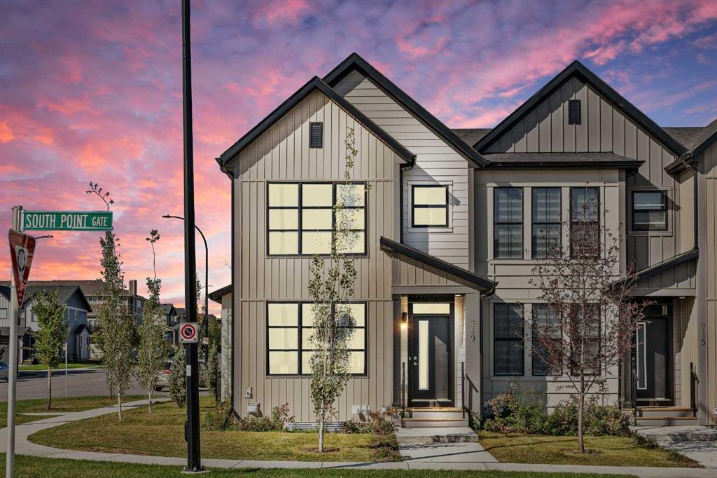This stunning east-facing corner lot townhouse offers 3 bedrooms, 2.5 bathrooms, and is located in the highly desirable South Point community in SW Airdrie. Step inside and be greeted by a spacious living room featuring large east-facing windows that fill the space with natural light and provide a serene view of the park. The open-concept kitchen is a dream for culinary enthusiasts, complete with a central island, extended ceiling-height cabinets, and sleek stainless-steel appliances. The adjacent dining area boasts west-facing windows overlooking the backyard, and the main floor is rounded out by a convenient mudroom and a 2-piece bath.