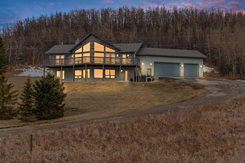 *Open House On Sunday 12th January 12-2pm CANCELLED due to a conditional offer being accepted* Welcome to this lovely 3 bedroom, 3 bathroom, air conditioned, walkout bungalow situated on 3.43 acres, just 3 minutes south of Okotoks. This property features awesome views, NEW FLOORING THROUGHOUT, a massive deck, lots of trees and a huge 3 car garage with high ceilings. As you enter into the home you are wowed by the vaulted ceilings, abundance of natural light and gorgeous new white oak hardwood floors. There is a large living room with gas fireplace which has built in shelving either side - a great place to relax after a long day and enjoy the far reaching views. Entertain in the dining area or step out onto the huge deck for a BBQ. The kitchen features stainless steel appliances, a central island with raised eating bar and lots of counter space. There is a great space to put a desk, perfect for anyone working from home. On this level are 2 spacious bedrooms, the master is huge and features doors on to the deck, a large walk in closet and a 5 piece ensuite with gorgeous new flooring, a jetted soaker tub and oversized shower. The other bedroom is a good size & has a large window overlooking the trees at the rear of the property. Completing this level is a laundry/mudroom with a sink and a 4 piece family bathroom with large vanity, both of these rooms have lovely new flooring. In the fully finished walkout basement is a massive family/games room with in floor heating, gorgeous new white oak hardwood floors and lots of natural light. There is another spacious bedroom and a 3 piece bathroom with a huge tiled shower and vanity with granite counter. The oversized triple garage has a gas rough in for a future heater, high ceilings and workbenches. There is a rear deck and a perfect firepit area, sit and relax and enjoy your treed view at the rear of the property or sit out on that massive front deck and enjoy the far reaching views. This property is extremely convenient for all the amenities that Okotoks has to offer. View 3D tour/virtual tour and then book your showing. OPEN HOUSE Jan 11 & 12th 12-2pm.