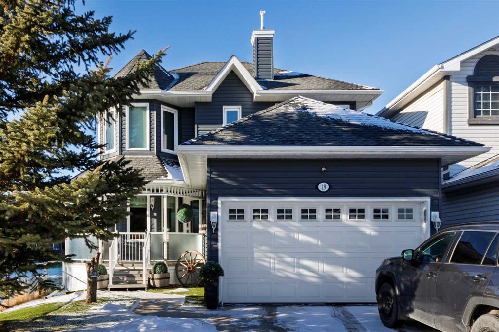 Welcome to 19 Woodside Crescent NW, meticulously maintained and extensively renovated 2-storey siding onto the pathway and backing West onto the park/greenspace. The unique turreted design, new; siding, eaves troughs & soffit lighting (2021) and turf grass give the home curb appeal that’s aesthetically pleasing. From the moment you step inside this jewel box, you'll be captivated by the warm, inviting atmosphere. The spacious living room (new carpet main & upper floor 2020) greets you with stunning natural light pouring in through the expansive and recently upgraded triple pane Lux windows. The kitchen is both functional and stylish (reno completed 2023), boasting a unique subway tile backsplash, ample upgraded cabinet space, corner pantry, quartz counters, laminate floors, and a raised breakfast bar that comfortably seats 3. Open to the dining room, this space is ideal for hosting family meals or casual gatherings and includes a functional built in pantry storage w tile backing, quartz counters and an interior open to below feature. A convenient 2-piece powder room is also located on the main floor, perfect for guests. Upstairs, the generously sized primary suite is a true retreat, complete with a charming sitting area, an oversized walk-in closet, and a luxurious 4-piece ensuite. The second bedroom is spacious and bright, while the main 4-piece bathroom offers convenience and comfort. You'll also appreciate the large, dedicated laundry room on this level—making chores a breeze (This 3rd bedroom was converted to a laundry room and could be converted back to a bedroom if the future need required). The fully finished basement (completed 2023) provides endless possibilities, featuring an expansive family room, a flex space that could serve as a home gym or entertainment area, and an office currently set up as a chic nail studio/salon. Additional features include a second laundry room, utility , and storage rooms—ideal for keeping everything organized. The high efficiency furnace, water heater and water softener were recently installed (2023). Step outside to enjoy your own private oasis—an immaculate, fully-fenced backyard where you can relax in the Hot Tub or on the massive, recently upgraded maintenance-free wrap-around West facing deck (dura deck w aluminum & glass railings), with a glass of wine. Walk the stamped concrete path to your outdoor firepit area. The inviting curb appeal is enhanced by a large, maintenance-free wraparound deck, and the attached garage with extra driveway parking adds to the home's convenience. Situated next to a park with scenic walking and bike paths, this property is perfectly located for families, just a short walk from Benkie's Lagoon, schools, shopping, and Woodside Golf Course. This home is truly move-in ready and waiting for its next loving owner. Don't miss your chance to experience everything this home has to offer—schedule your showing today!