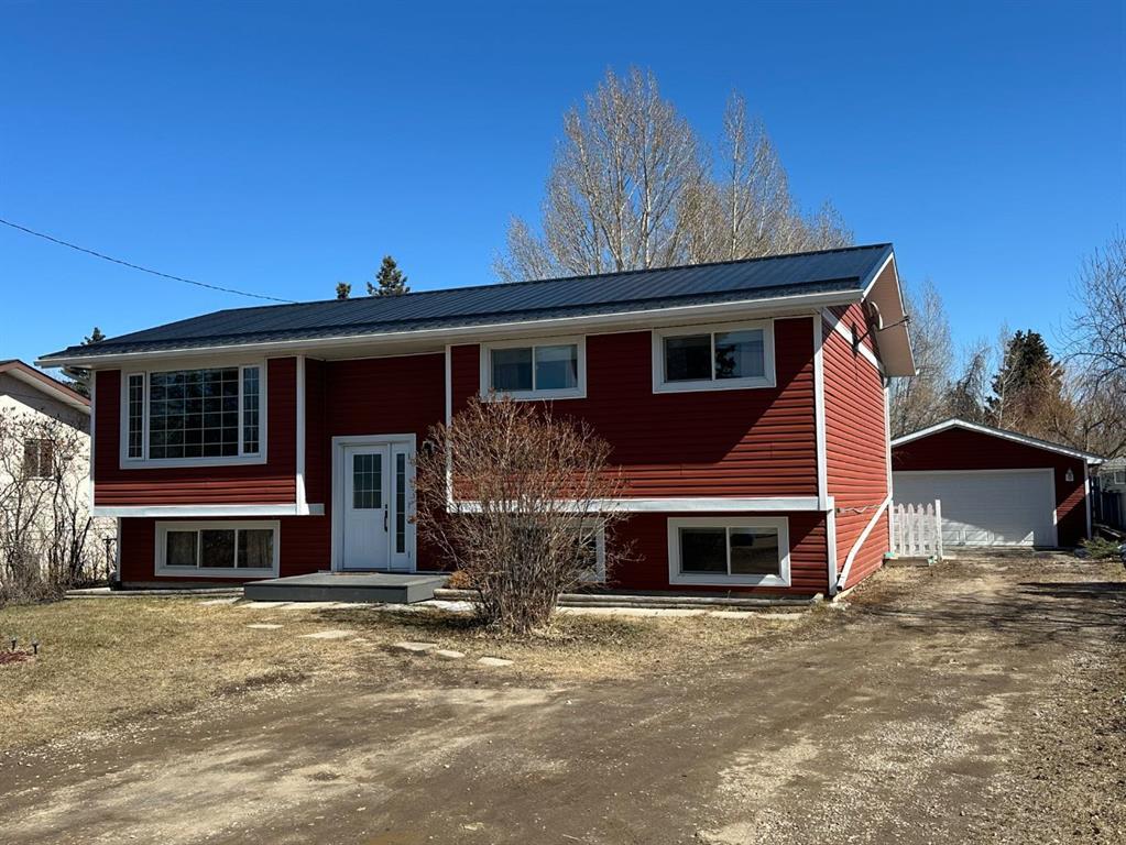 Welcome to this beautifully renovated bi-level home in the heart of Three Hills, where modern elegance meets cozy charm. With 4 bedrooms and 3 bathrooms, this home offers an open-concept design flooded with natural light from skylights and large windows. The updated kitchen features a stylish island, sleek stainless steel appliances (2022), and a charming breakfast nook. A four-season sunroom with a gas stove creates the perfect space to unwind. The fully finished basement includes a spacious rec room and cold storage walk-up access to the backyard. Step outside to your private oasis—a fully fenced, oversized yard with mature trees, lush greenery, a Brazilian hardwood deck, and a fire pit with seating area, ideal for entertaining or relaxing in the calm of nature. The bonus of a double detached garage space and huge front driveway access that provides multiple parking stalls for family and friends visits. Recent updates include full fresh paint throughout, snow guards on the metal roof to prevent falling ice/snow sheets, new carpet in the basement bedrooms, and electric heated tile in the 4pc. basement bath & newer gas water-heater tank. Close to schools, shopping, entertainment, restaurants, walking paths, parks and all sorts of recreational activities and facilities throughout the town!!