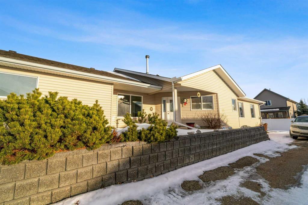 This attractive duplex is an exciting and affordable opportunity to own a home in the vibrant and exclusive '55plus' community of "The Meadows", Condominium Association No. 0010894, in the thriving western Alberta Town of Olds. The 1315 square foot bungalow-duplex on a corner lot with two large bedrooms on the main level and attached two-car garage was built in 2006, and recently refurbished to be "as new" and "move-in ready". This attention to detail includes re-painting, polishing hardwood, and replacing all carpeting and vinyl. The open concept interior with kitchen breakfast counter separating dining room and living room is enhanced by the vaulted ceilings. The large master bedroom is complemented by the large ensuite, and a second full bathroom serves the rest of the home. The full basement is heated by forced air, and has had piping installed for in-floor heat , as does the garage. Extra features include center-vac, gas fireplace, garage work benches and shelving, garage door opener and window coverings. Extra outside features include an in-ground lawn irrigation system, gas BBQ connection and landscape trees. The common property of The Meadows provides an RV Compound and shared storage area and well appointed condo clubhouse for condo community activities, and private events. The Town of Olds boasts all amenities, including recreation and health facilities, entertainment and big city shopping in small town style. The super mountain views and walking trails are bonus features for an active western living style perpetuated by the The Olds Agricultural college, the vital and surrounding agricultural community, and the weekly auction and agricultural shows.