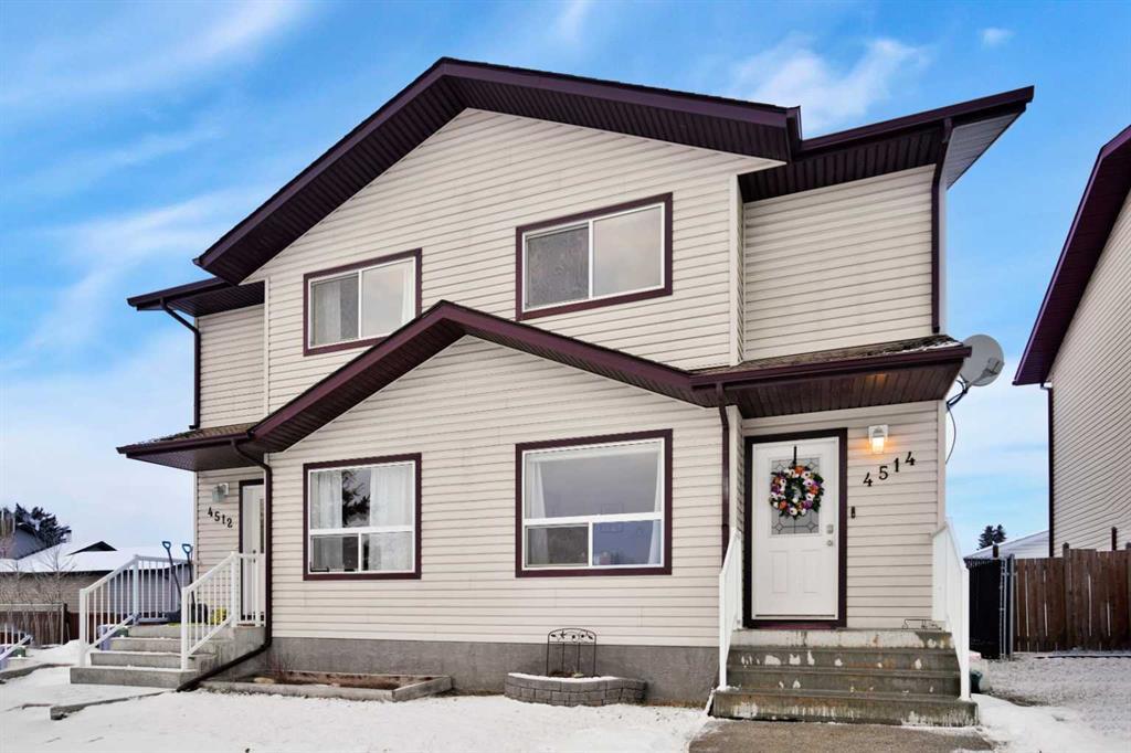 This 1/2 duplex is an excellent opportunity for a starter home or rental property. The main floor offers a front living room, kitchen / dining room, 2 piece bathroom and main floor laundry. Easy access to the back deck and north facing fully fenced back yard. The 2nd level offers 3 spacious bedrooms and a 4 piece bathroom. The fully finished basement finishes off this family home with a 2nd living room, a 2 piece bathroom and a flex room that is currently being used as an office space, but does have a window for potentially a 4th bedroom. This property is conviently located in Mountain Village and is an easy commute to restaurants and the downtown area, there is nearby neighborhood playground for families with younger childen located less than a block away at the end of the culdesac. This property offers street parking in the front and alley access off-street parking in the rear and has the space for a garage in the future. MOVE-IN ready, start the new year in your new home!
