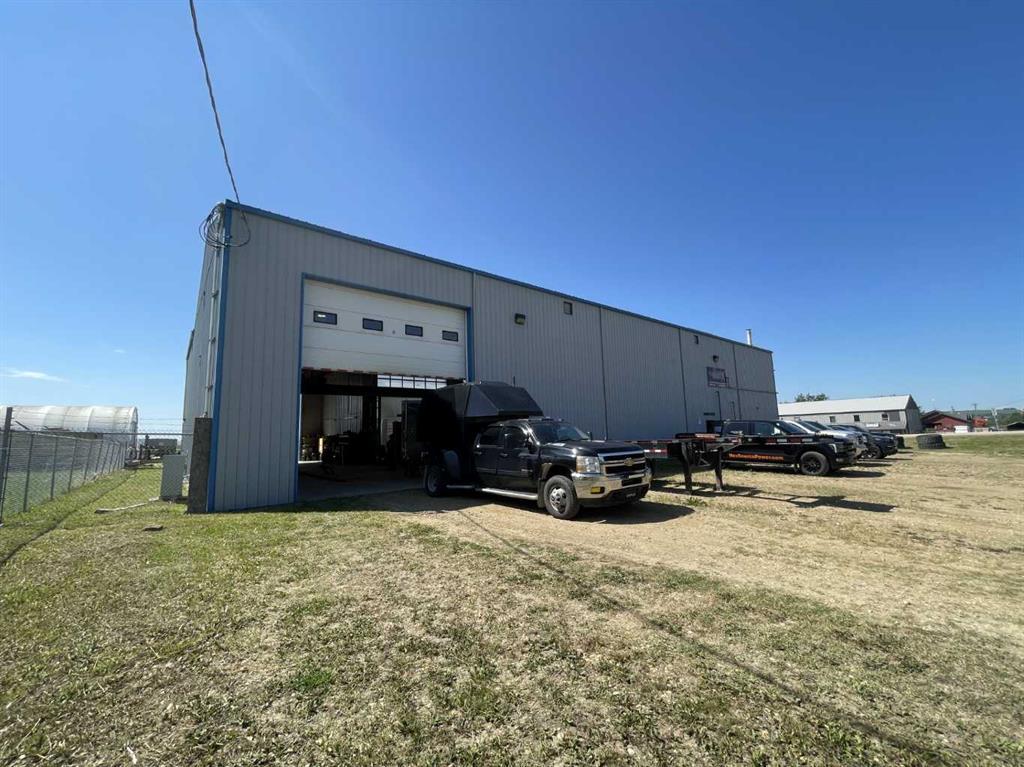 This Industrial property offers a 6,900 SF footprint, featuring a versatile layout. The building measures 50' deep by 120' wide, including a drive-thru bay spanning 30'x80', while the remaining area is 50'x90'. Water is soucred from a well and the sewer is connected to the city. Inside you'll find one office and a kitchenette. The mezzanine includes a boardroom and storage room. The building is equipped with a trench sump for all three bays and a separate sump for the drive through bay. A standout feature is the 25-ton crane with a 42' bridge, 75' length, and an 18.5' hook height complimented by two 12.5-ton hooks. The building includes one 16'x20' overhead door and four 18'x20' doors including a drive thru option. New Boiler, in-floor heating, an air compressor, cold storage, parts area, 400 amp, 480-volt electrical service. Property also for lease, see MLS# A2171661