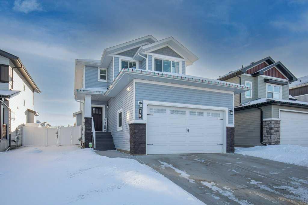 Nestled on an expansive lot, the location of this LOVELY TWO STORY home is ideal. The beautiful backyard is south facing and backs on to an fantastic green space. The curb appeal is soothing and inviting, accented with stonework and a quaint entrance. A double attached garage provides plenty of indoor parking and leads into a large mudroom. Groceries can be easily unloaded with the walk-thru pantry. The kitchen features crisp white cabinetry, contrasted with the dark rich wood of the island. Countertops are draped in gorgeous granite and sleek subway tile. You will appreciate the stainless steel appliances, convenient corner pantry, and pendant lighting. The large living room is anchored by a beautiful gas fireplace and wide picture window. The dining room offers a front seat to the peaceful green space. Step thru the glass garden door to enjoy the large deck and fully fenced yard. The backyard is encircled with lovely landscaping featuring expansive curbing and a firepit feature. After a long day, head upstairs to lounge in the family zone. The primary bedroom is spacious and boasts a 4-piece ensuite, including a soaker tub and gorgeous glass and tiled shower. Two additional bedrooms and a 4-piece bathroom wonderfully accommodate the whole family. The luxury of second floor laundry is an added bonus. The basement is a blank slate and awaits your finishing touches. Let the warmth from that south facing sunshine stream in, Central Air will keep this home comfortable throughout the summer! Centrally located in the new neighborhood of Crestview, close to schools, walking trails, and Highway 11, this could be the one you've been waiting for!!