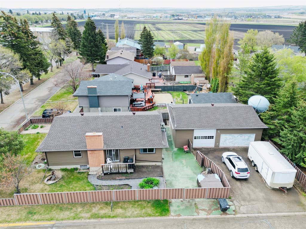 Looking for a large shop to work on vehicles or storage for all your toys plus a nice fully finished 1502 square foot bungalow with 28 x 40 SHOP - this home is perfect for the growing family, empty nesters or the person who wants to have lots of living space, a shop to work on projects and situated on the south end of Lacombe with easy access to the highways! Lots of updates in this home include new flooring, trim, some lighting, and cabinets refurbished in the kitchen. Basement has had new flooring and cabinets in laundry room have been refurbished as well. Beat the summer heat with air conditioning which was installed last year! Main floor has a spacious living room/dining room plus another space for 2nd living room or dining room with wood burning fireplace! Lots of windows allow the natural light to shine in with a view of the research station to the west! Main floor features four piece bathroom, two bedrooms plus the primary with a 4 piece ensuite! Basement has a large family room with pool table, wet bar, storage room, large laundry room with cabinets and a closet, plus 4th bedroom (window does not meet egress). The heated shop measures 28 x 40 with 12 foot ceilings - 220 wiring - a perfect space for the "car enthusiast"! Lots of parking is another advantage of the corner lot! The yard is landscaped and boasts an abundance of perennials! Fully fenced yard. This is a great place to call home or a good investment property - rent out the house and/or the shop! Attention INVESTORS...the house is presently rented for $2400 plus utilities - tenants are willing to stay!
