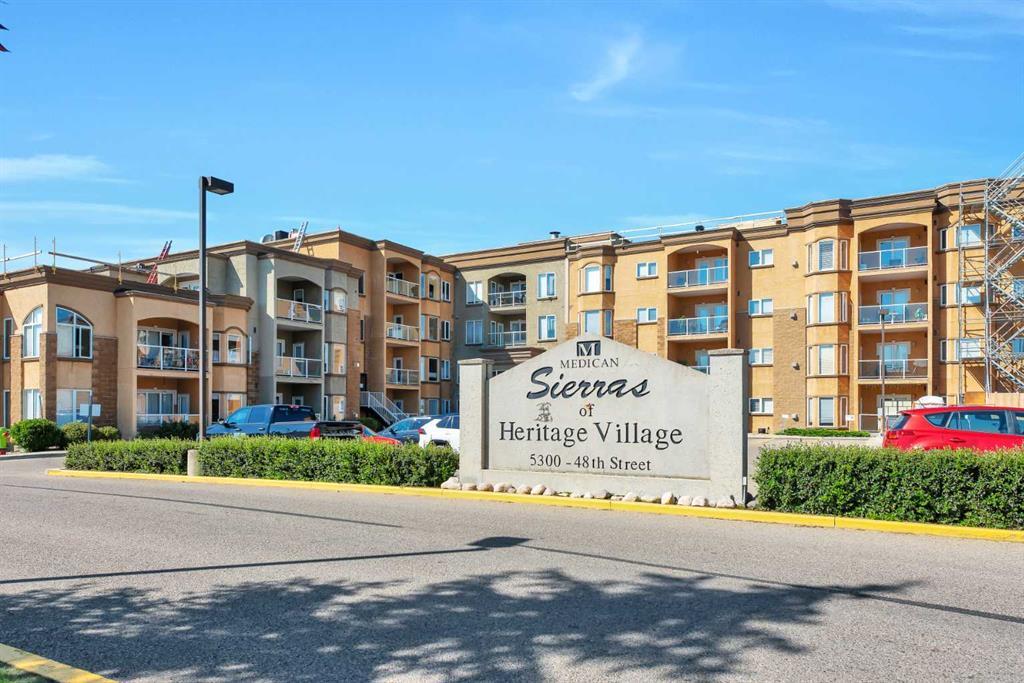 If you're looking for convenience, space and comfort, this is the unit and building for you! Located in the 55+ building of Sierra's of Heritage Village, this 3-bedroom unit has almost 1,500 sq ft, of living space and provides ample room to relax and entertain. Once inside the unit, you'll appreciate the 2 hall closets to store all your boots and jackets. Around the corner, the open floorplan is warm and cozy with hardwood floors and fresh new, fresh paint throughout the unit A corner fireplace in the living room is centred between 2 sets of large windows, one being a bay window. You'll have plenty of space for a large sectional. The u-shaped kitchen features white cabinetry and stone countertops. Enjoy your morning coffee on one of the two patios that this southwest corner unit offers, one right off the dining area and the other off the master bedroom. The master bedroom features a luxurious 4-piece ensuite and generous walk-in closet. Right off the living room is the second bedroom which could also be used as an office or craft space. Down the hallway on the opposite side of the unit, is the in-suite laundry with storage, 3 piece bathroom and another bedroom with bay window...the perfect spot for guests to stay! This Sierra's building offers an abundance of amenities including a games room, welcoming entry way, entertaining room with a full kitchen, library, workshop, guest suites, fitness center, crafts room, and a saltwater pool with hot tub. Two titled parking stalls are included, one underground and one outside, as well as an assigned underground storage area. Located near shopping, restaurants, and walking trails, you'll be in the centre of urban living with all the comforts you desire.