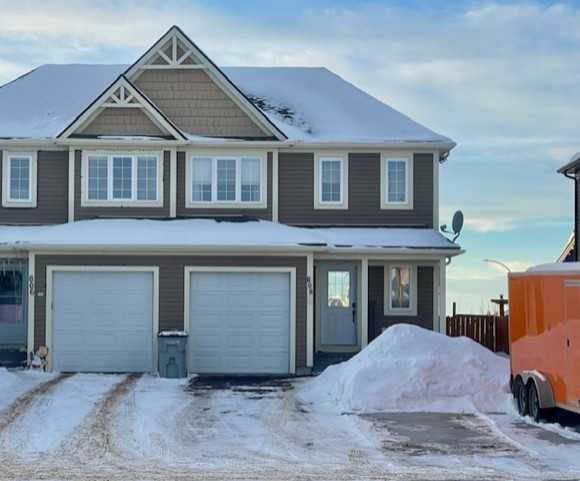 Discover your serene sanctuary in Wainwright, Alberta! This charming 1/2 duplex, built in 2011, invites you to experience the joys of comfortable living in a serene setting. As the sun rises to greet you each morning, enjoy the tranquility of facing east, a blissful start to your day. Step inside this well-appointed home with central air-conditioning, where thoughtful design meets modern convenience. With three bedrooms and three bathrooms across two levels. No more lugging laundry up and down stairs - the second level laundry is conveniently located near the bedrooms, making chores a breeze. Indulge in the epitome of elegance with quartz countertops and a marble backsplash in the kitchen. Sliding doors beckon you to step onto the two-tier deck, where a gazebo awaits for hosting BBQ gatherings or simply unwind in the privacy of your fenced yard. A shed provides additional storage for your outdoor essentials. Escape to the fully finished basement, where a spacious family room offers endless entertainment possibilities. A large 3/4 bathroom adds convenience and functionality to this lower level retreat. Your vehicle finds shelter in the attached single-car garage, complemented by a paved driveway with additional double concrete pad for added convenience. Conveniently located near shopping centers, restaurants, and parks, this home offers the best of both worlds - urban amenities within reach and the tranquility of suburban living. Don't miss your chance to call this home in Wainwright yours.