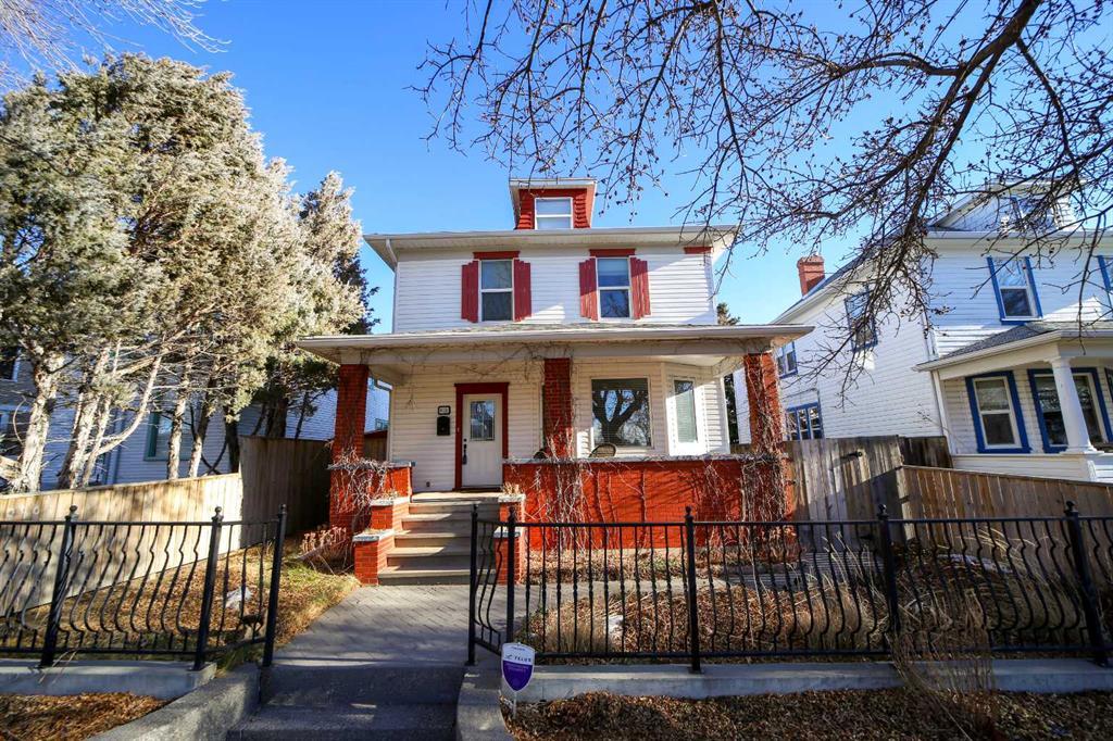 This charming 1910 character home defines timeless elegance, offering warmth and sophistication in a mature, tree-lined neighbourhood. The two-story plus loft features rich hardwood floors, intricate woodwork, and a stunning stained glass window that adds a touch of historic charm. With three spacious bedrooms and two beautifully updated bathrooms, with a third 3 pc in the basement ; designed for both comfort and style. Enjoy morning coffee on the inviting covered front veranda or take in the city skyline from the private rooftop patio. The oversized, heated double garage provides ample space for vehicles and storage. Nestled in a community with mature trees and a welcoming atmosphere, and a short walk to downtown. This home is a rare find that seamlessly combines history, character, and modern convenience.