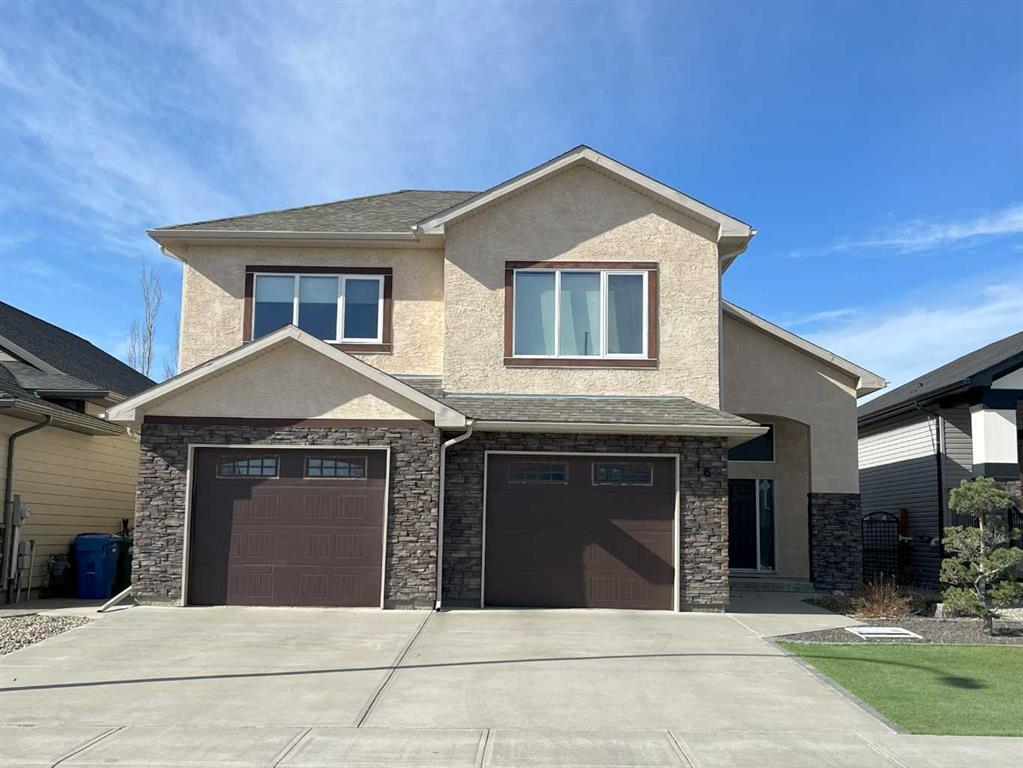 Discover unmatched Privacy and Value! Welcome to an incredible opportunity in the heart of Riverstone! This beautifully crafted bi-level by Greenwood Homes backs directly onto a scenic creek and expansive greenspace—providing unmatched privacy with no neighbors directly behind and a tranquil natural backdrop. Priced well below replacement cost, this home delivers outstanding value for discerning buyers. With over 3,330 sq. ft. of meticulously finished living space, this 5-bedroom, 3.5-bathroom home offers a thoughtful and executive-style layout, perfectly designed for family life and entertaining. The open-concept main floor features a granite kitchen with brand-new stainless steel appliances, a bright dining space, and a cozy living room complete with built-in shelving and a gas fireplace. The luxurious main-floor primary suite includes a trayed ceiling, a spa-like 5-piece ensuite with a jetted tub, and a generous walk-in closet. Added convenience comes from main-floor laundry and a practical, family-friendly layout with no wasted space. Downstairs, enjoy a massive light-filled family room with large windows, a second gas fireplace, and direct access to the covered walk-out basement leading to your landscaped, low-maintenance yard with artificial turf. The oversized double garage and serene location make this home both elegant and practical. Nestled in a quiet, sought-after neighborhood close to schools, parks, and amenities, this home offers privacy, space, and serenity at an unbeatable price. Incredible value based on replacement, per square foot basis and Tax assessment! —see it to believe it!