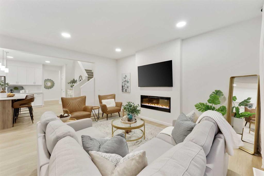 WELCOME to this GORGEOUS - Homes by Avi – BRAND NEW, NEVER LIVED IN, 2 Storey that has 2352.68 Sq Ft of DEVELOPED Living Space, + another 1004.57 Sq Ft of Unfinished Basement (SIDE ENTRANCE), an ATTACHED DOUBLE GARAGE, 4 BEDROOMS, 2 1/2 BATHROOMS (incl/EN-SUITE) on a 3569 Sq Ft LOT in the SOUGHT-AFTER Community of LANARK in Airdrie!!! We begin w/Curb Appeal incl/Stone on the exterior, + a UNIQUE Garage Door w/4 Windows allowing in light when working on a vehicle or a project inside. The Covered Front Porch has an extra railing, + Front Entryway Door that has windows. As you step inside the Foyer, you are drawn to the 9’ CEILINGS, LVP Flooring, NEUTRAL Colour Tones, + NATURAL LIGHT coming through the Windows throughout. A 2 pc Bathroom is there, as well as the MUD ROOM which has access to the Garage. Right through to the HUGE WALK-THROUGH PANTRY (STORAGE) which is CONVENIENT for carrying in those groceries from the garage. We head to the SLEEK CHEF’S STYLE Kitchen to see the BEAUTIFUL 2-TONED Cabinetry, Tiled Backsplash, QUARTZ Countertops w/Cupboards for STORAGE, SS/BLACK Appliances, an ISLAND w/Sink, + prep area incl/BREAKFAST BAR for those On-the-go meals, + Pendant Lighting. The Dining Room area is PERFECT for those Dinners w/FAMILY, + FRIENDS around the table having meaningful conversations. The Patio Door leading out to the WEST-FACING Backyard (ENHANCES PRIVACY due to its orientation away from main roads, + warmer in winter months w/SUNLIGHT coming in the latter part of the day). A future Deck/Patio will offer a TRANQUIL RETREAT from the Hustle & Bustle of daily life incl/taking in the Sunset or Star Gazing. The Living Room has an ELECTRIC Fireplace that looks STUNNING, + gives a COZY feel to the space whether cuddling up on the couch on a chilly night, or reading a book as you RELAX after a long day. Heading up to the Carpeted Upper Floor is the LARGE Bonus Room which INVITES Family Game Nights/watching Movie Marathons together, or even an area for an OFFICE/HOMEWORK station where it is QUIET. The Primary Bedroom will fit a King-Sized Bed w/Furniture. A Tiled 4 pc Bathroom incl/Water Closet, Soaker Tub, Standing Glass Shower, + a roomy WALK-IN Closet. On the other side of the Bonus Room is the 4 pc Bathroom w/Soaker Tub, a Laundry Room, + the GOOD-SIZED 2nd, 3rd, + 4th Bedrooms. There are 9' CEILINGS in the Undeveloped Basement, which also has ROUGH-IN for Kitchen/Bathroom/Laundry room so POTENTIAL for an extra Bedroom for a Mother-in-Law, or an Office/Recreation area. MAJOR UPGRADE in this HOME is the 200 amp Service for electric cars/hot tubs. The New Home Warranty is also included in all HOMES BY AVI for PEACE of mind. EASY access out of Airdrie to Highway 2, + minutes drive to all AMENITIES. Pathways connect the community to Ponds, Pergolas to relax under, Parks, Playgrounds, Picnic areas, Firepits, + an Outdoor Amphitheater. Residents can access the Baseball diamonds, Basketball courts, + multiple Soccer fields. BOOK your showing TODAY!!!