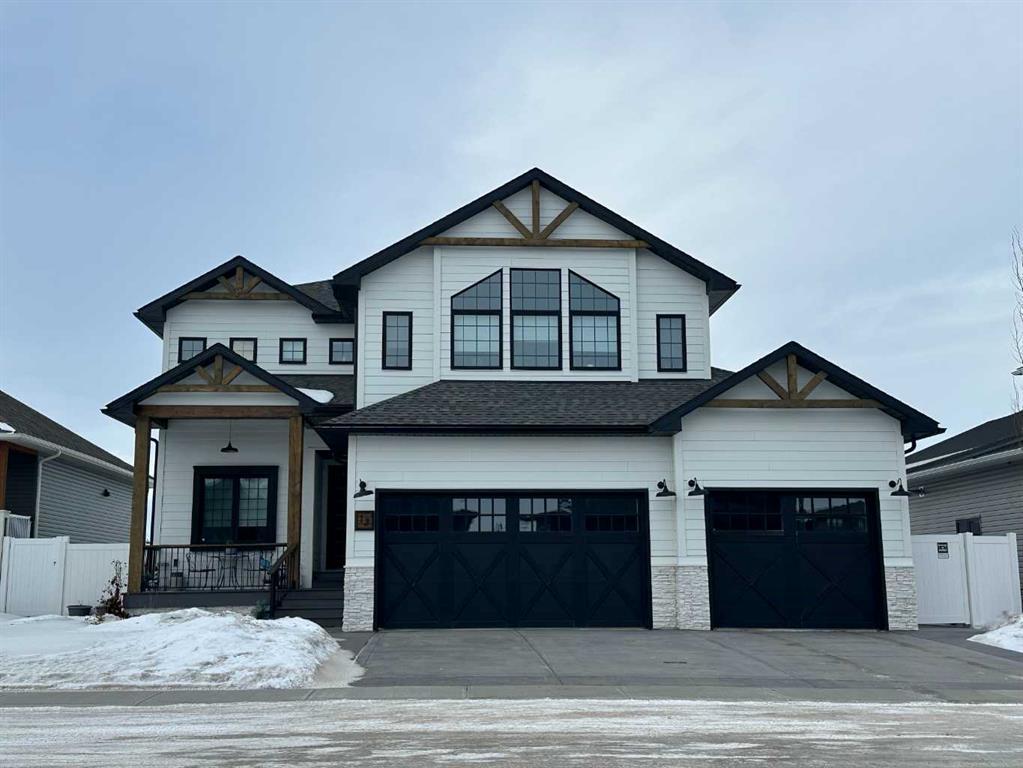 Welcome to your dream home! This stunning two-story residence is nestled on a quiet cul-de-sac and features a charming exterior with hardy board siding and elegant wood details. Inside, you'll find a spacious layout designed for modern living and entertaining. The main floor includes a versatile bedroom that can serve as a home office, a convenient 2-piece bath, and an open-concept living, dining, and kitchen area with a large living room featuring the first of four cozy fireplaces. The dining room offers garden doors leading to a covered back deck, while the chef's kitchen boasts cabinets to the ceiling, a large island with waterfall quartz countertops, and a gas cooktop with an automatic stainless steel hood vent. A walk-through pantry with ample storage connects to the mudroom, and the oversized 3-car garage features custom built-in storage. Upstairs, enjoy a bonus room at the front of the house with a gas fireplace. Two bedrooms with walk-in closets, a 4-piece bath, and a laundry room for added convenience are also on this level. The second floor master bedroom offers breathtaking mountain views, a fireplace, a large walk-in closet, and a luxurious 5-piece bath with a makeup vanity and a walk-in shower with a bench. The lower level is complete with a wet bar featuring a kegerator, full-sized fridge, and built-in storage, opening to a large family room with another gas fireplace. Additionally, this level includes a spacious bedroom, a 4-piece bath, and the mechanical room. The landscaped and fenced yard features a large covered deck with stunning mountain views. This home boasts too many extras to list and must be seen to be fully appreciated. Don't miss your chance to own this exquisite home that combines elegance, comfort, and functionality in a peaceful neighborhood. Schedule your private tour today!