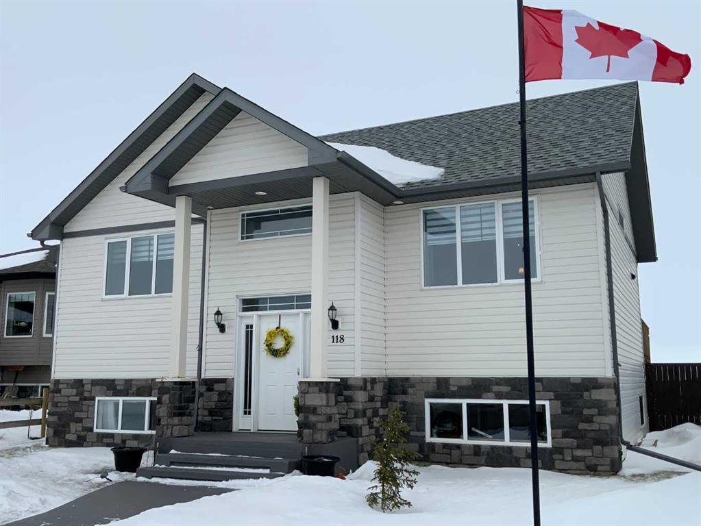 Truly Majestic Family home on a Highly desired Street in Three Hills, Alberta. This Great Family Home offers equal access to both local K - 12 schools and College as well within a few short blocks to all amenities, Shopping, Pool, Exercise, Main Street And Healthcare facilities. Spectacular views from this home overlooking farm fields. The Well appointed Kitchen comes with almost new appliances still on warranty, as well it has a working Island with a raised eating bar. High Vaulted ceilings on the main floor and High ceilings in the lower level also which adds that sense of spaciousness. REAL Hard wood and Tile floors as well as carpet where it is appropriate. Heated basement floor, as well a heated floor in the ensuite bathroom. So much extra lighting as well as the large windows are factors in how you experience this well lit and bright home. The views are truly medatative and the east mornig sun streams into the Dining area and the deck. Yet the yard and deck has shade for those hot summer evenings. Pride of ownership shows throughout the this home. Newly fenced yard, as well there is room to build your garage and still have a large yard. Note the custom Play structures in the family room for your children to enjoy.